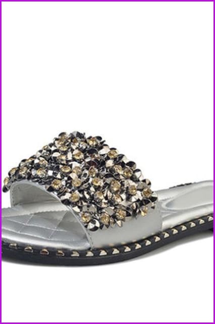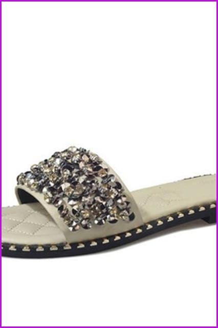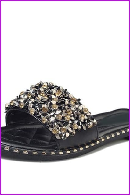 The Black/Beige/Silver Crystal Rivets Flat Beach Slippers F140 destined to impress, and priced at only $17.99, for a limited time.