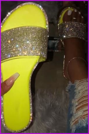 The Yellow/Black/Hot Pink/Orange Crystal Slides Sandals F191 is the yin, to your yang. You've found what you're looking for.
