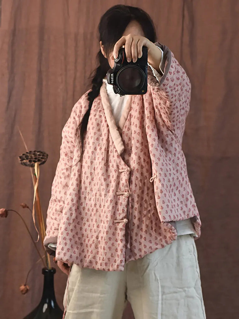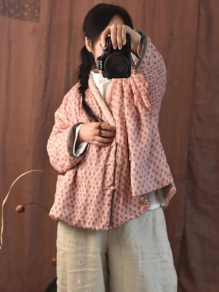 The Ethnic Flower Pink Padded Coat is evocative, to say the least, but that's why you're drawn to it in the first place.
