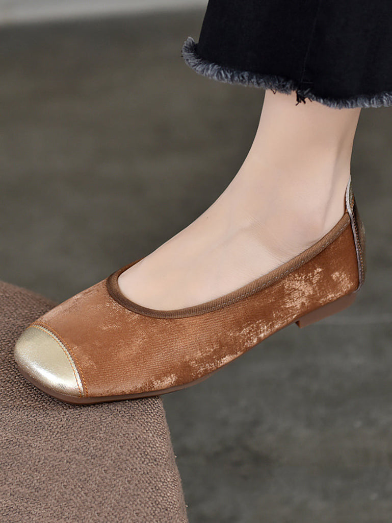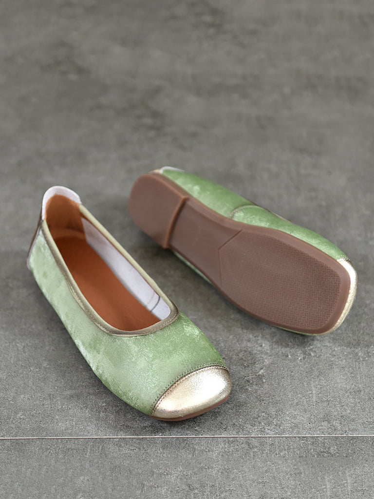Women Elegant Summer Colorblock Cowhide Flat Shoes KL1022