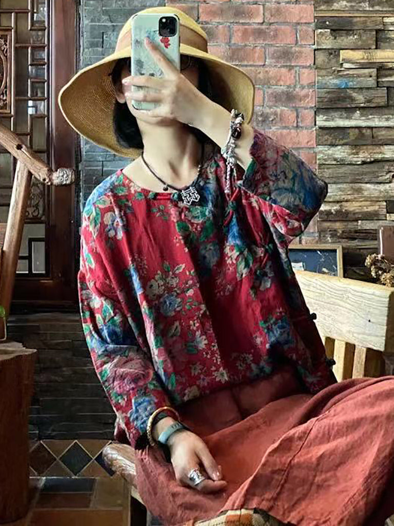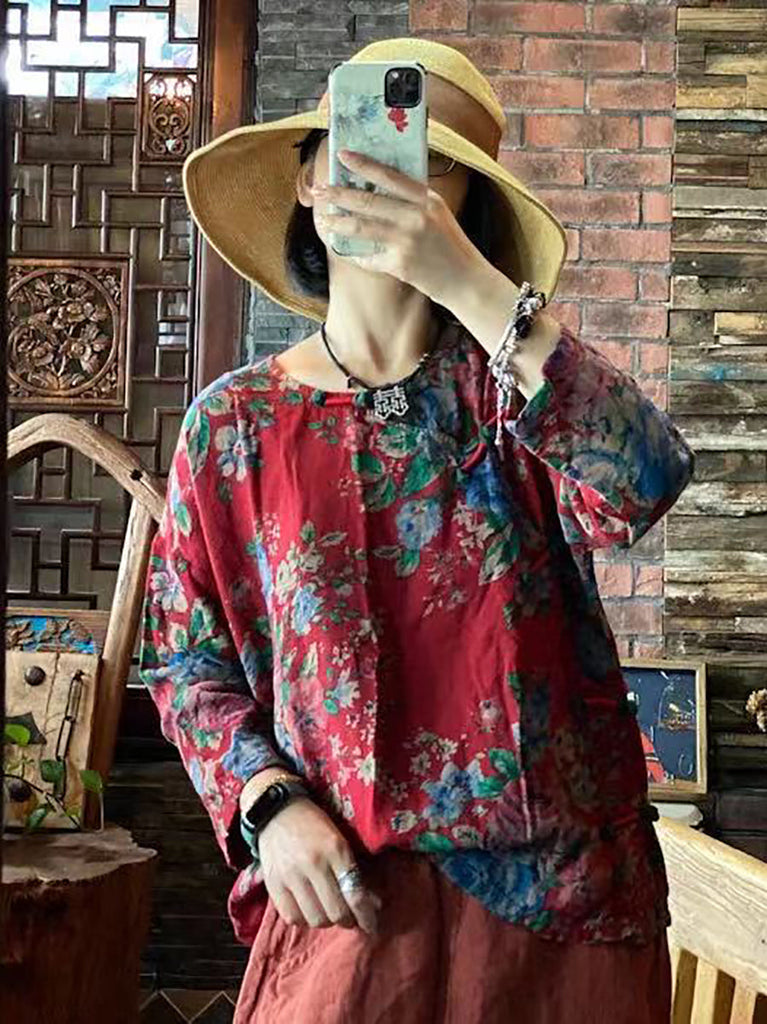 Women Ethnic Floral Loose 100%Cotton Shirt AA1032