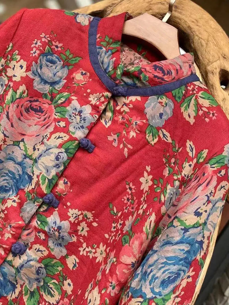 Women Flower Print Cotton Padded Coat
