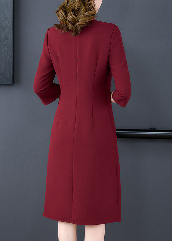 Women Mulberry V Neck Embroideried Silk Fake Two Piece Dress Bracelet Sleeve