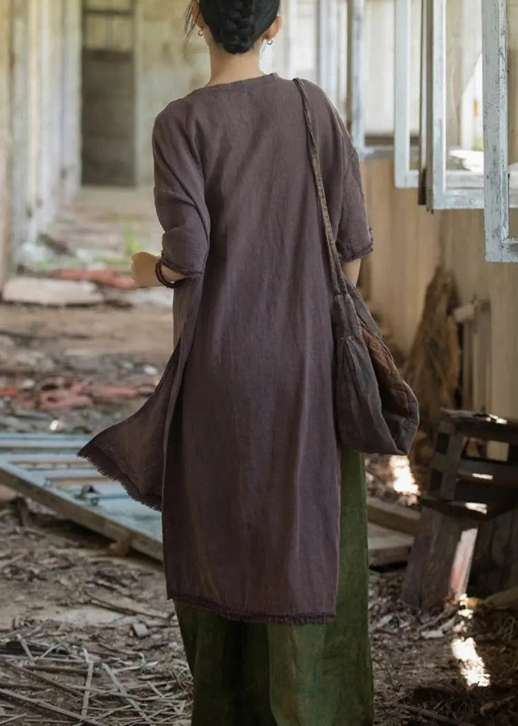 Women Purple Solid Side Open Linen T Shirt Dresses SummerFabric: Cotton 29.2%, Linen 70.8%