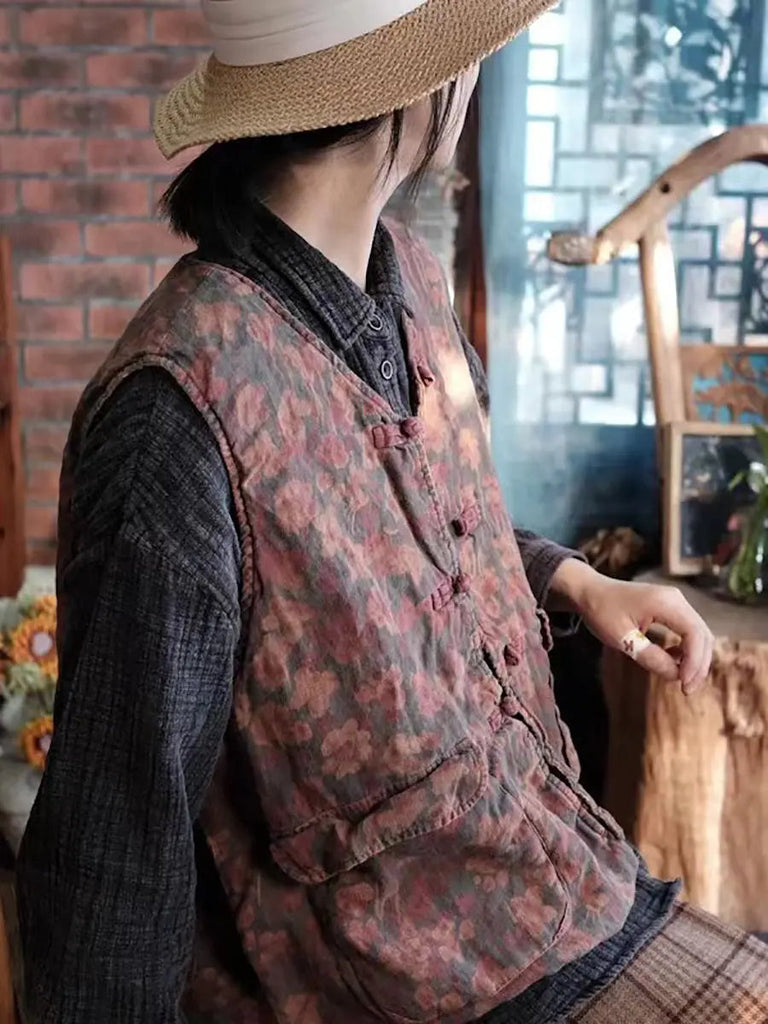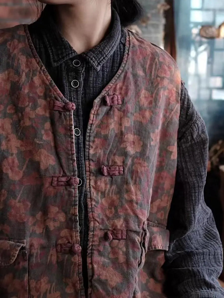 This vest coat is the perfect blend of style and functionality, crafted with a timeless design of linen and cotton fabrics and embellished with beautiful floral details. Perfect for layering in the cooler months, and ideal for those seeking to add a touch of vintage flair to their wardrobe.