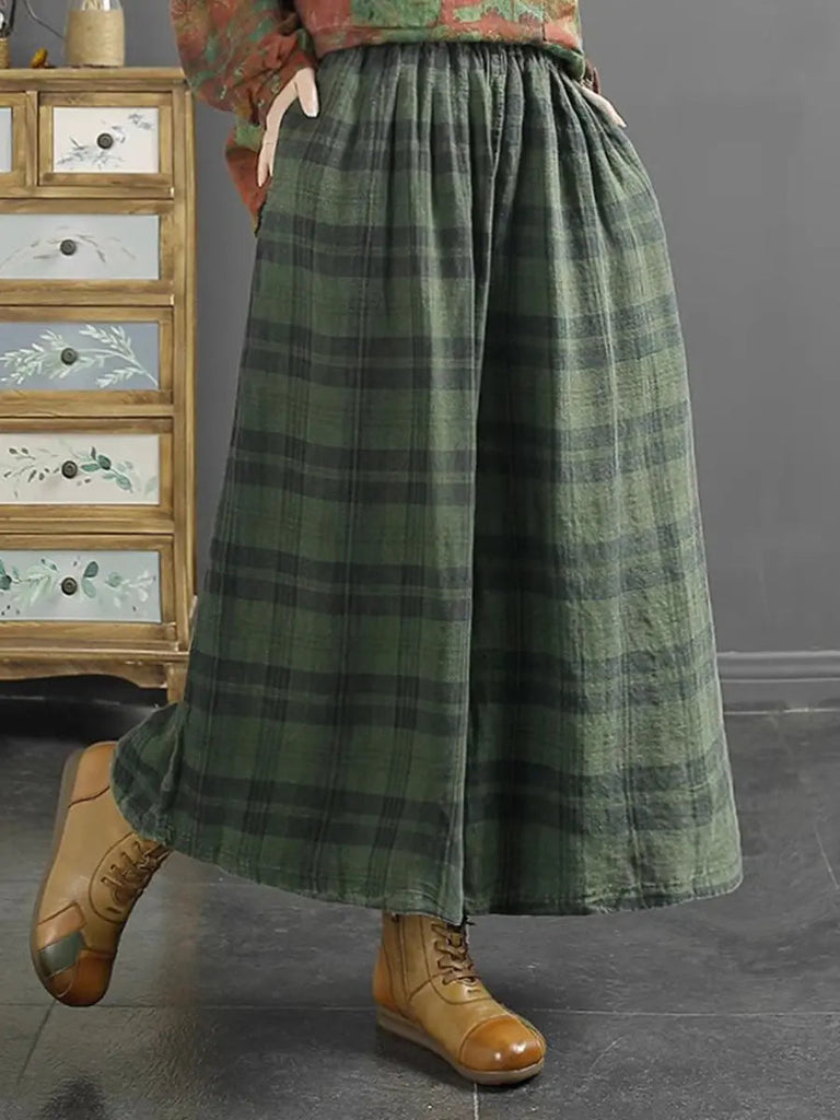 Expertly crafted from 100% linen, these Retro Plaid Spring Wide-leg Pants feature an elastic waist and a full length design. Perfectly blending vintage style with modern comfort, these pants are a must-have for any Spring or Summer wardrobe.