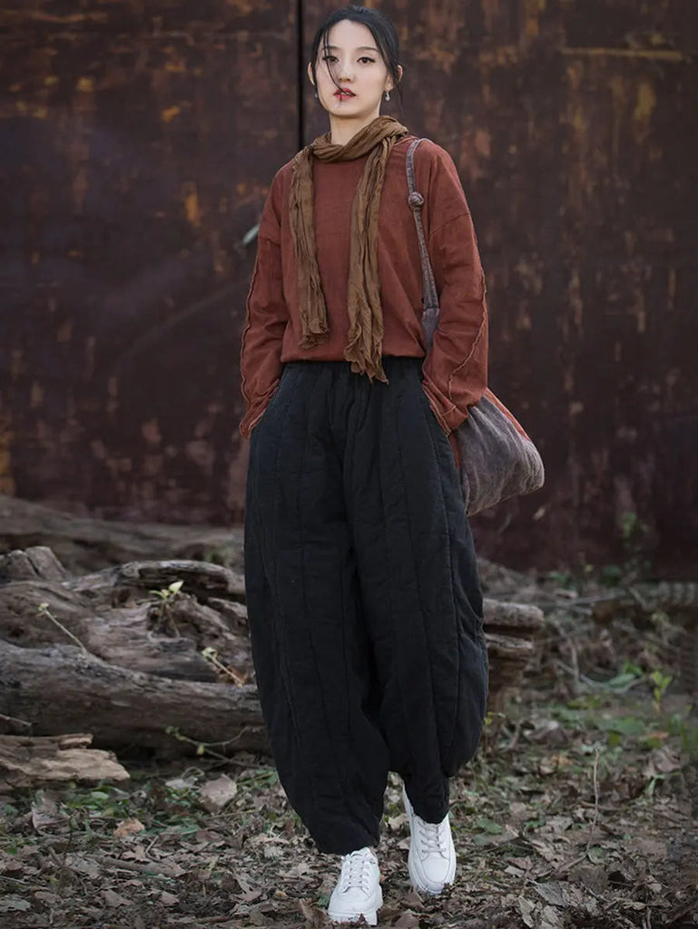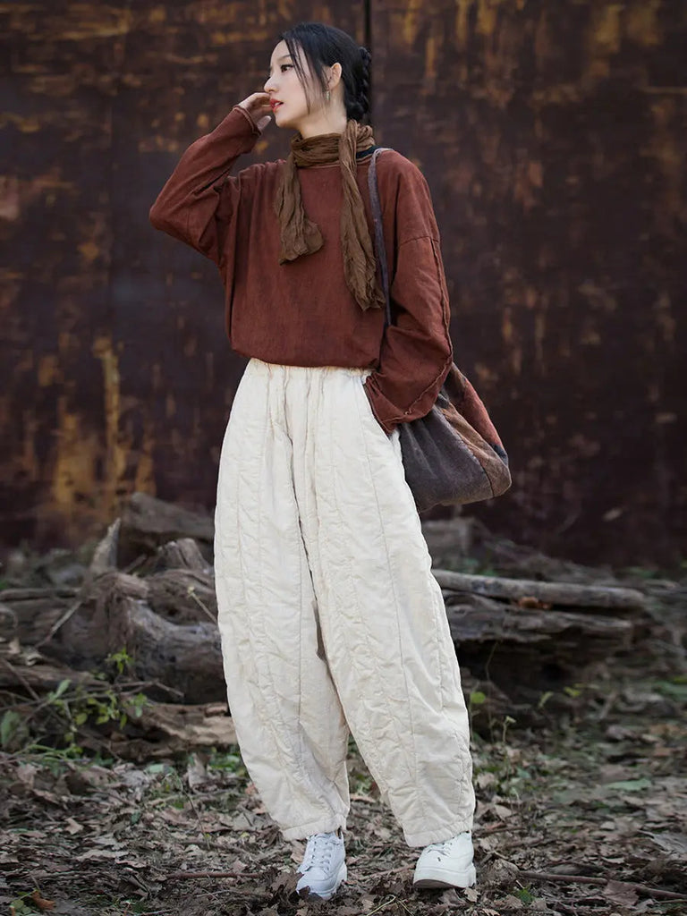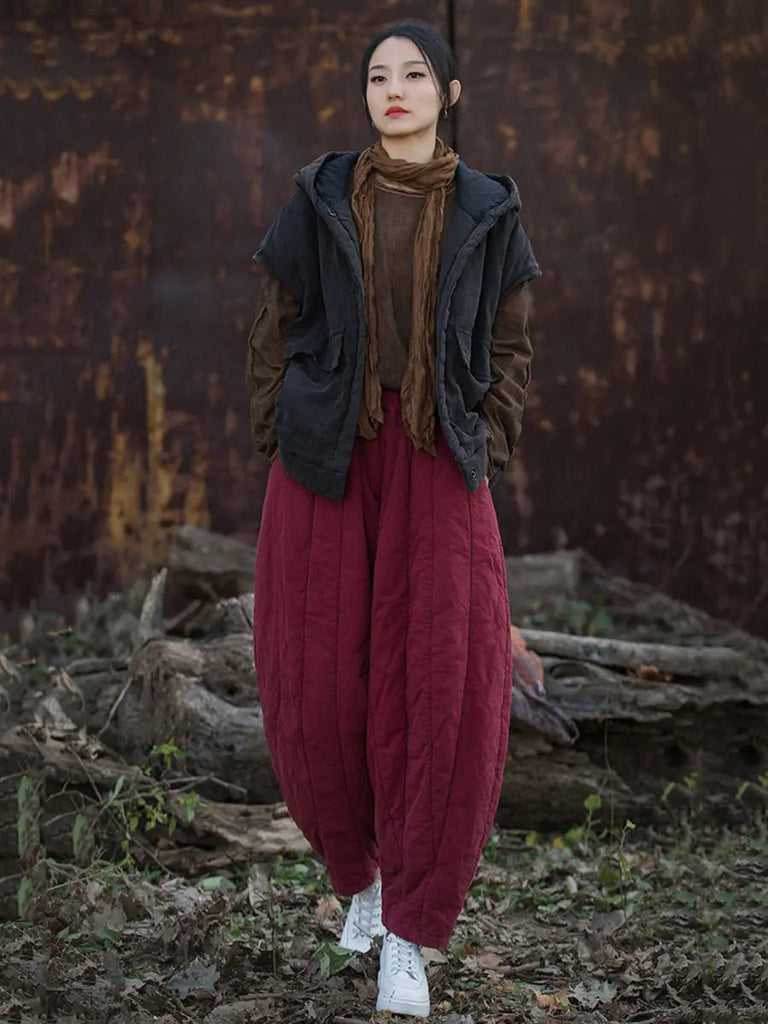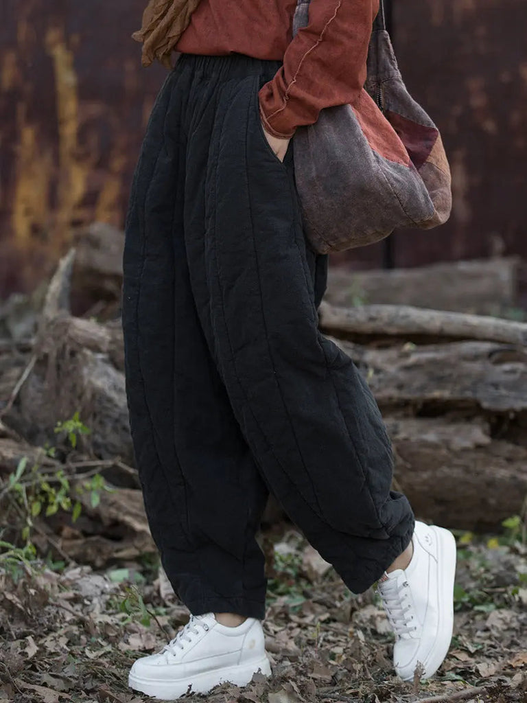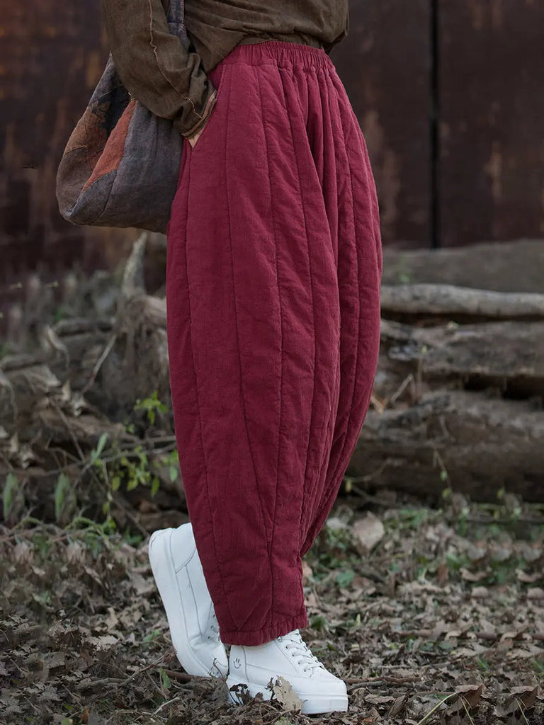 Women Stripe Stitching Thicken Harem Pants