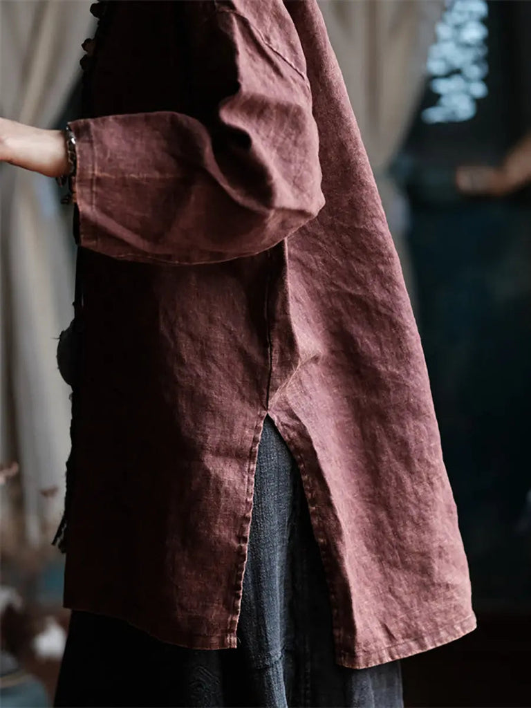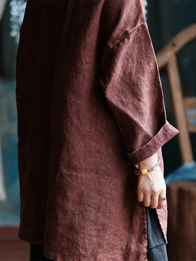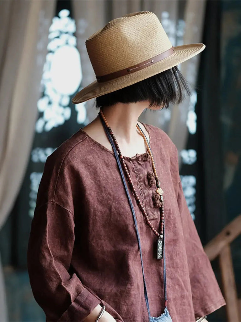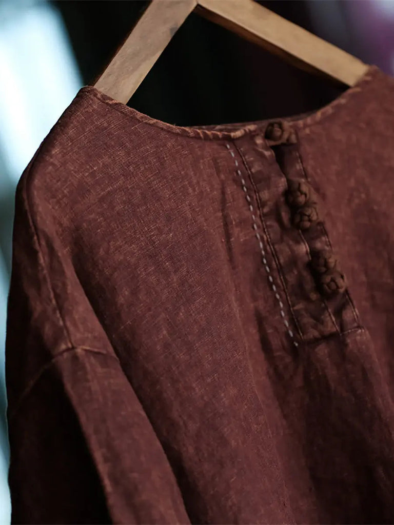 Constructed from high-quality linen, this Women Retro Spring Worn Knot Button Shirt features a solid pattern, an O-Neck collar, full-length raglan sleeves, and a vintage style that is perfect for the autumn and winter seasons.