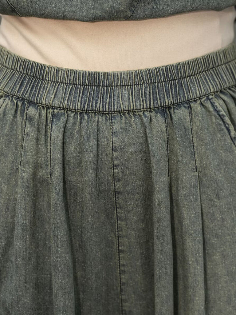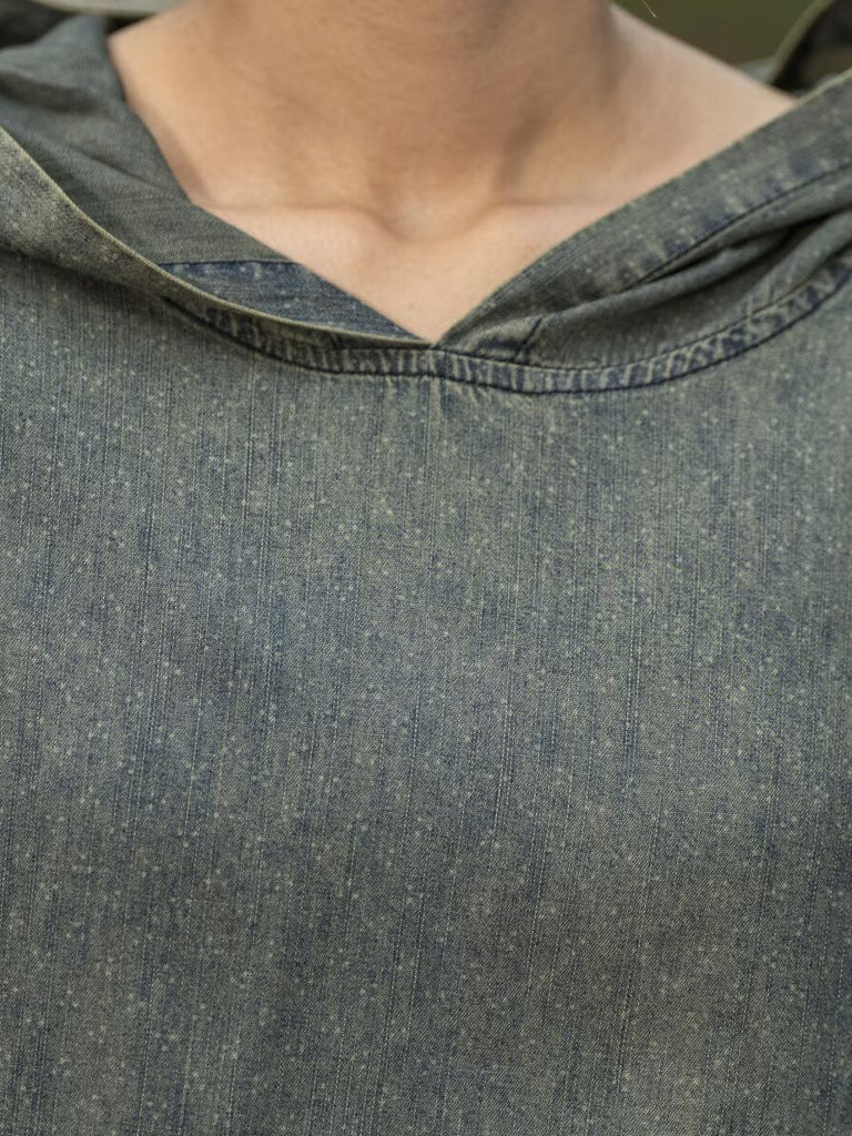 Women Retro Summer Solid Denim Spliced Hooded Shirt+Pants AA1055