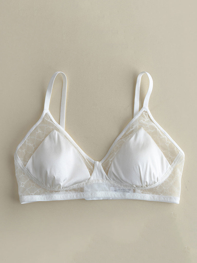 Women Sexy Solid Lace Silk Spliced Triangle Bra KL1005