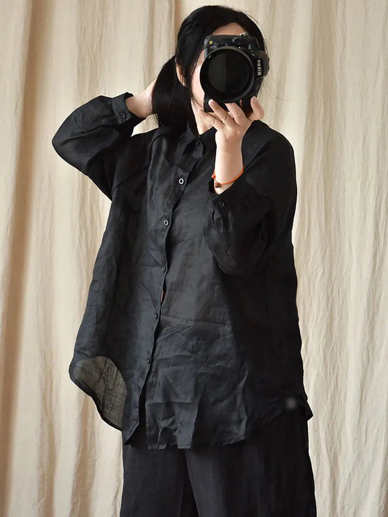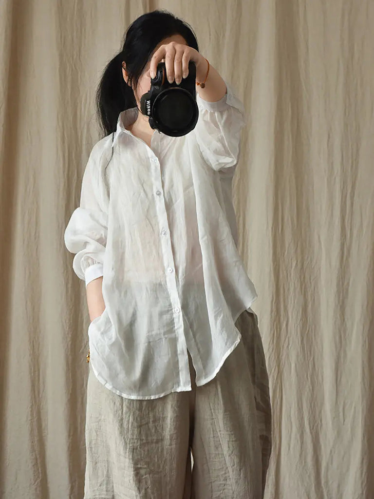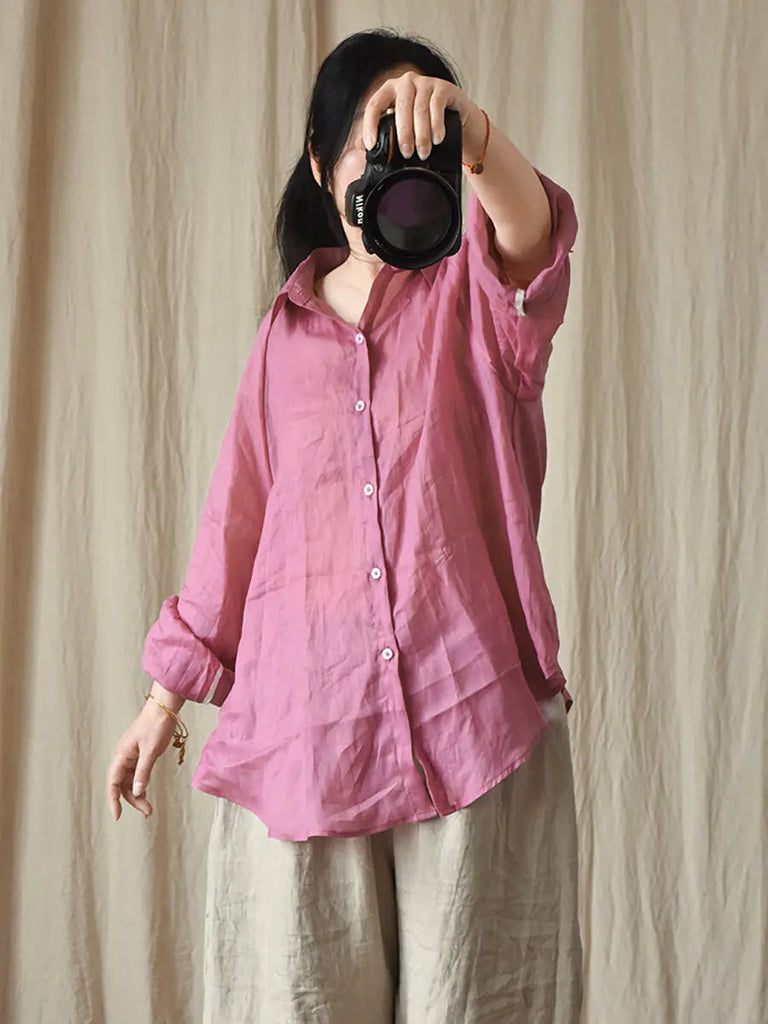 This Spring and Summer, stay protected from the sun in our Women's Ramie Sunproof Long Sleeve Shirt. Made with durable and breathable ramie material, this shirt features a solid pattern, turn-down collar, full raglan sleeves, and a casual style - perfect for any occasion.