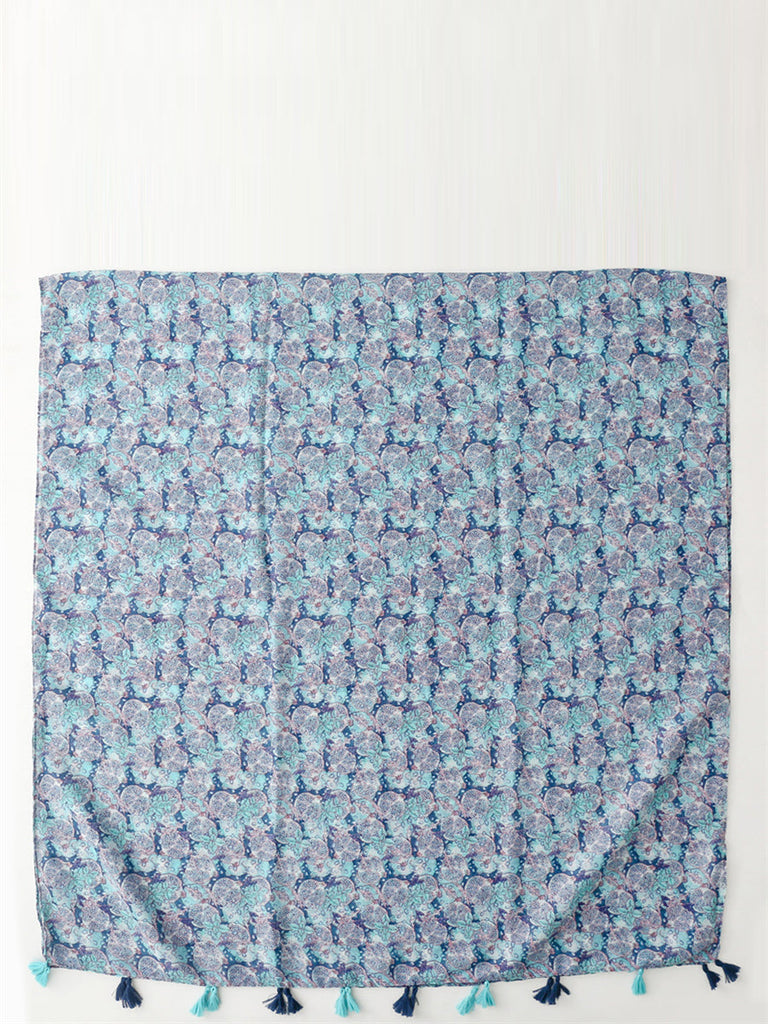Women Summer Artsy Blue Pomegranate Flower Shawl Scarf SC1014
