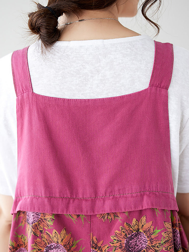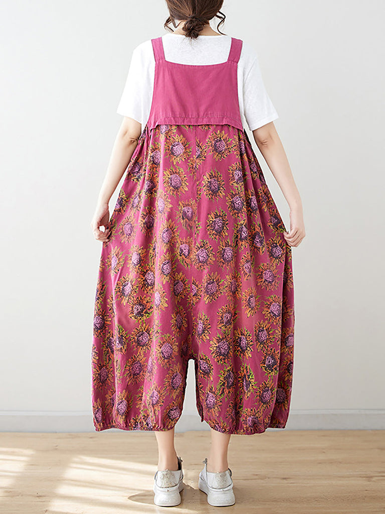 Women Summer Artsy Floral Spliced Loose Jumpsuits AS1051
