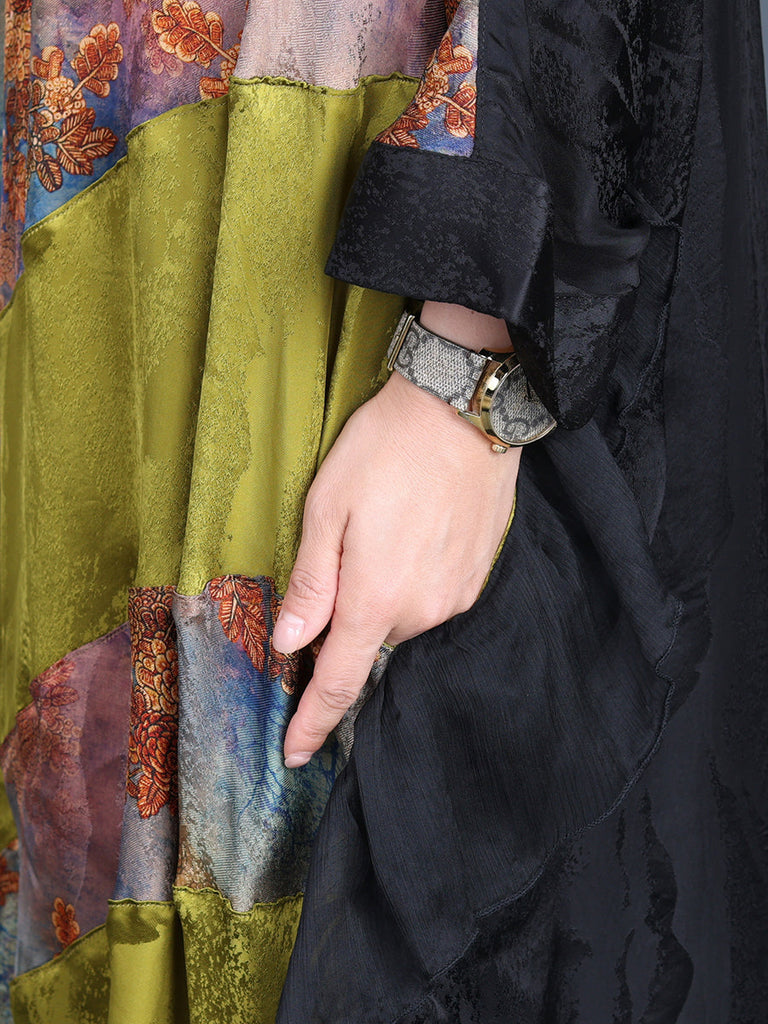 Women Summer Artsy Floral Spliced V-Neck Dress SC1006