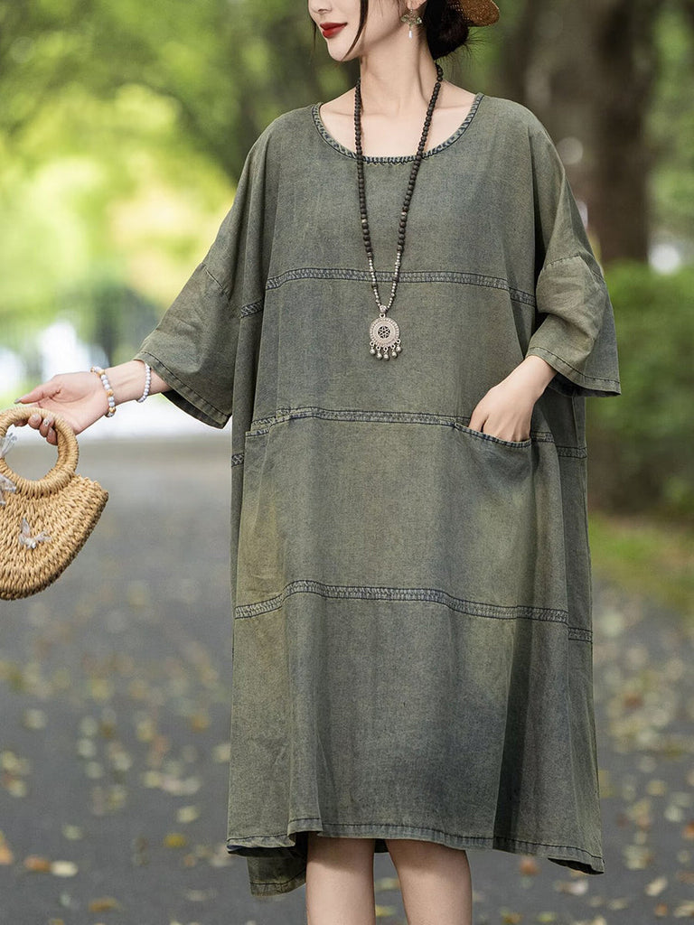 Indulge in the luxurious comfort of our Women's Summer Retro Spliced Denim Mini Dress QW1035. Crafted from premium cotton, this dress boasts an elegant O-Neck collar and sophisticated solid pattern. The raglan sleeves and half sleeve length add a touch of sophistication, while the knee-length design is perfect for warm summer days. Elevate your summer wardrobe with this exquisite dress.