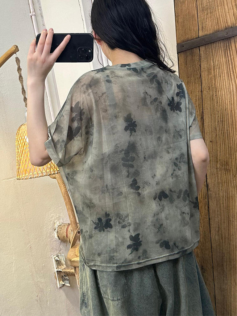 Women Summer Artsy Flower Worn Pullover Shirt QW1017