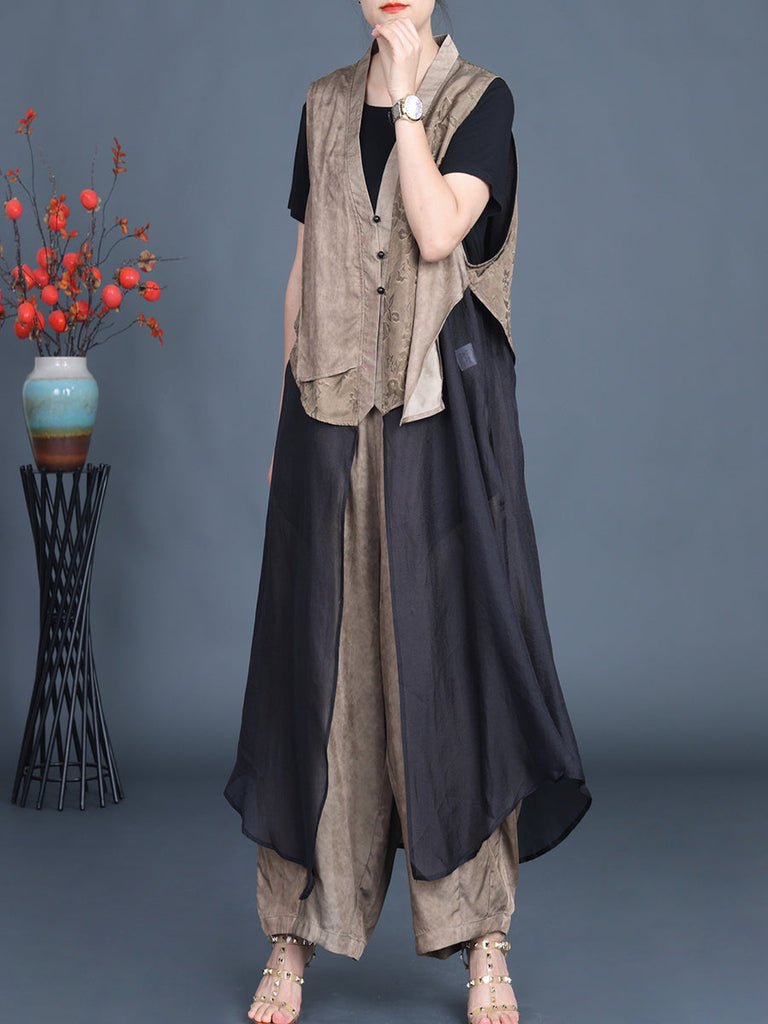 Women Summer Artsy Irregular Spliced Flower Vest XX1057