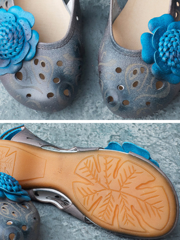 Women Summer Artsy Leather Flower Spliced Sandals UI1014