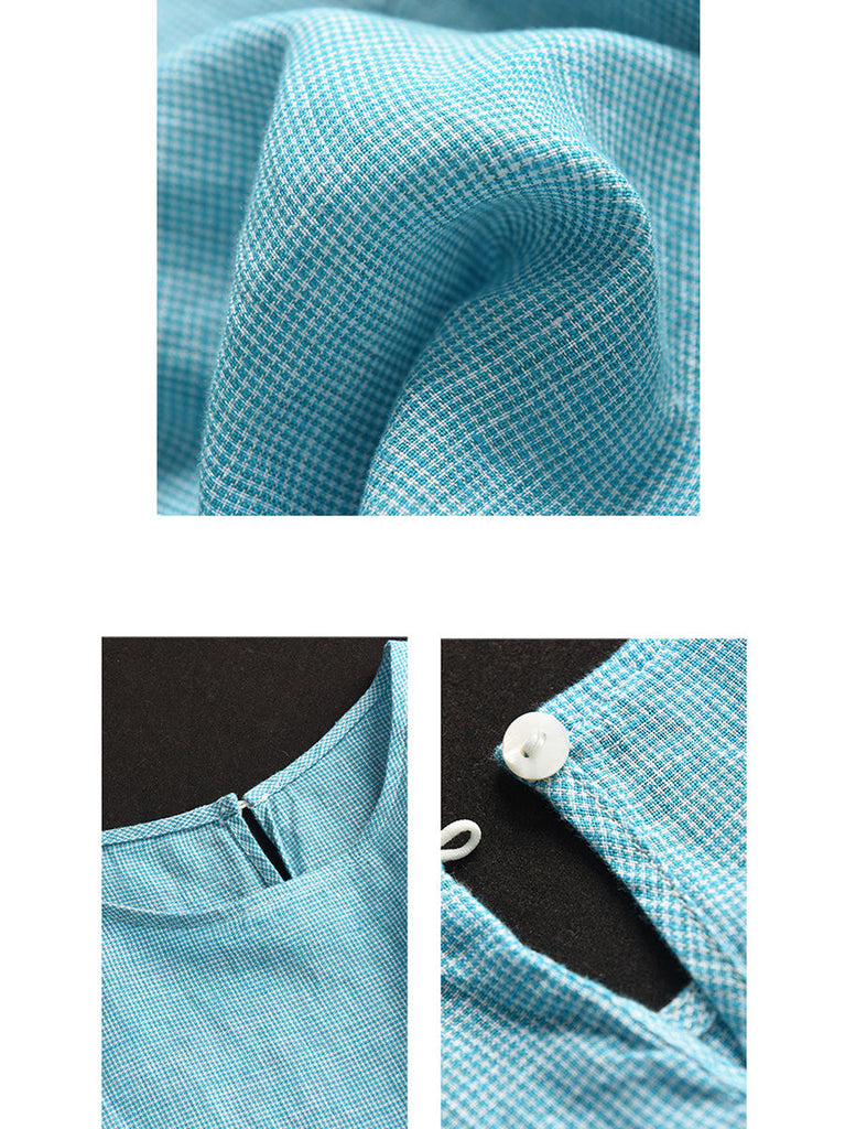 Women Summer Artsy Plaid Linen Loose Shirt KL1011