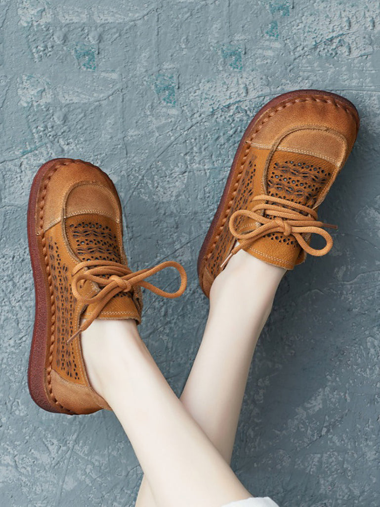 Women Summer Casual Colorblock Leather Flat Shoes AS1053