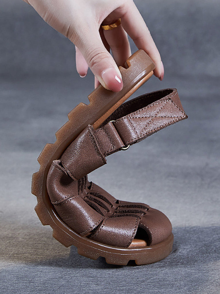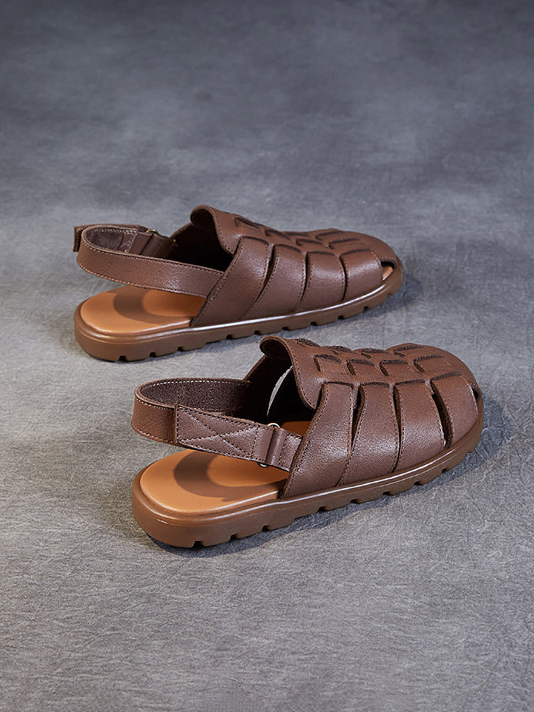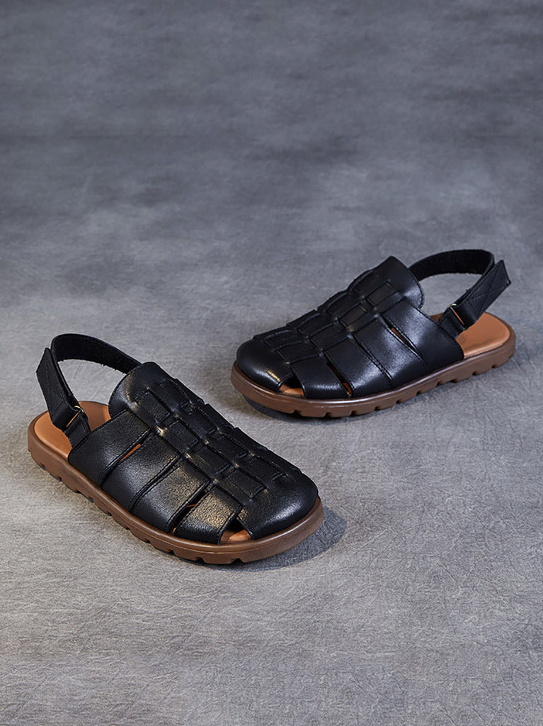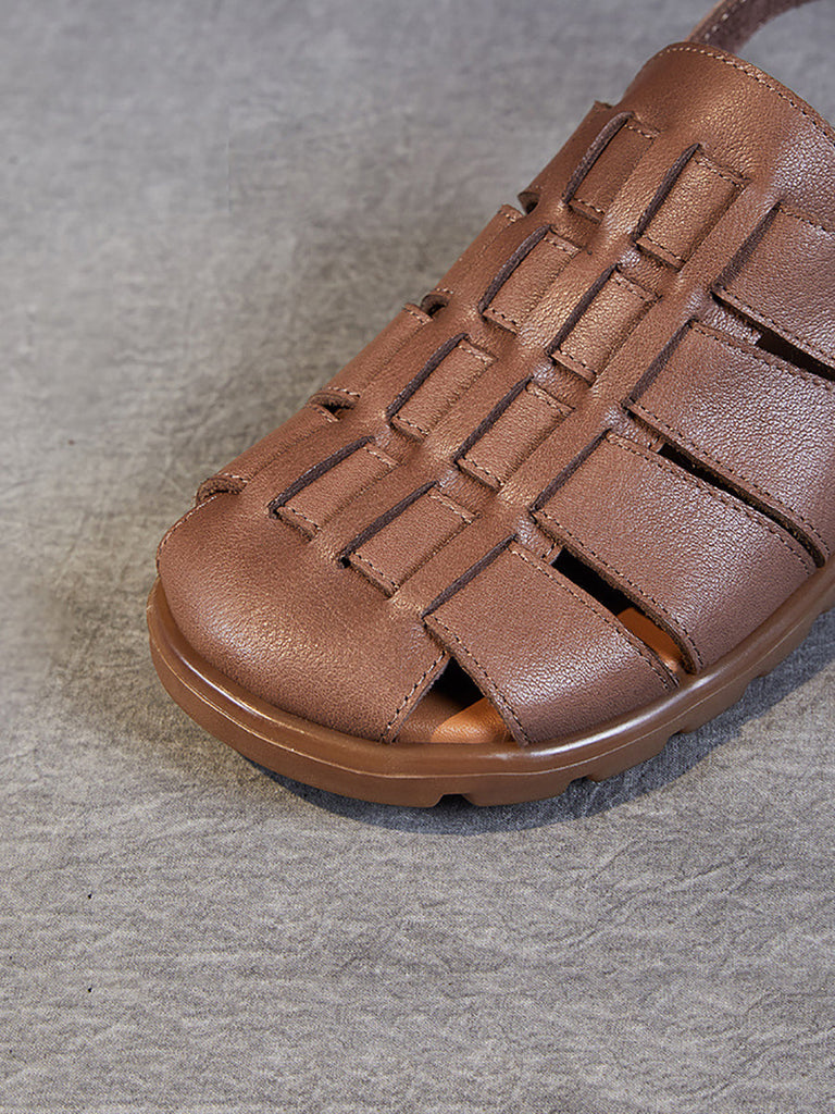 Women Summer Casual Leather Spliced Flat Slippers AA1015