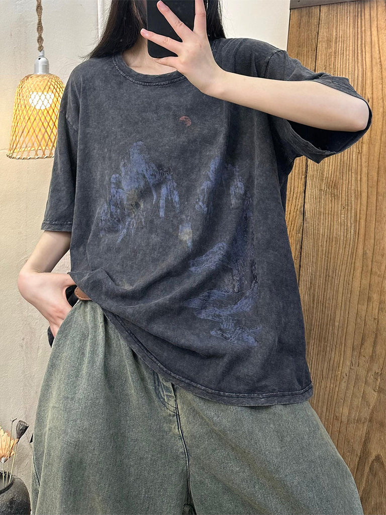 Women Summer Casual Mountains Print Cotton Shirt TY1019