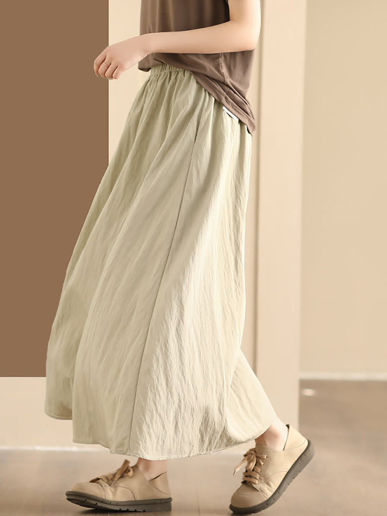 Women Summer Casual Solid Cotton A-shape Skirt KL1014