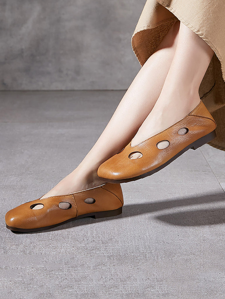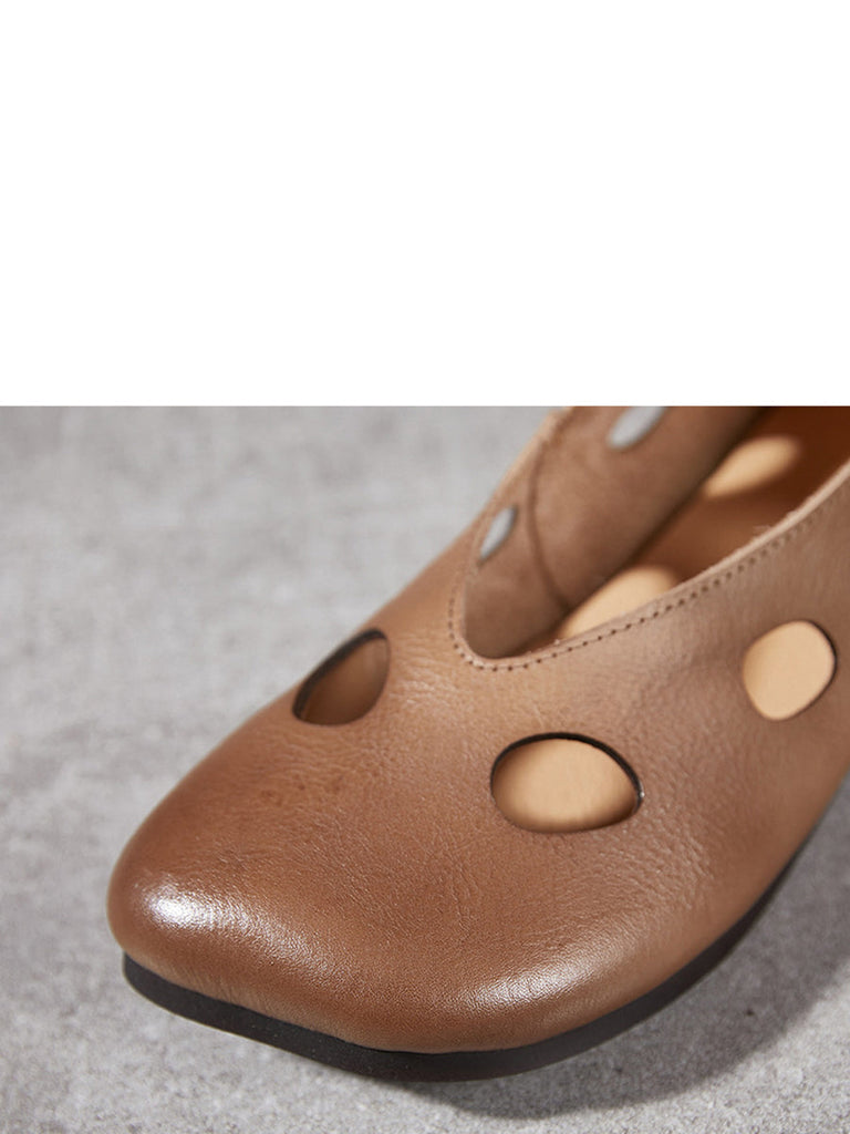 Women Summer Casual Solid Leather Cutout Soft Shoes IO1029