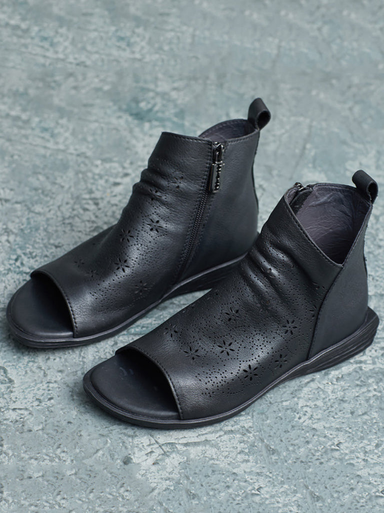 Women Summer Casual Solid Leather Open-toe Flat Shoes UI1015