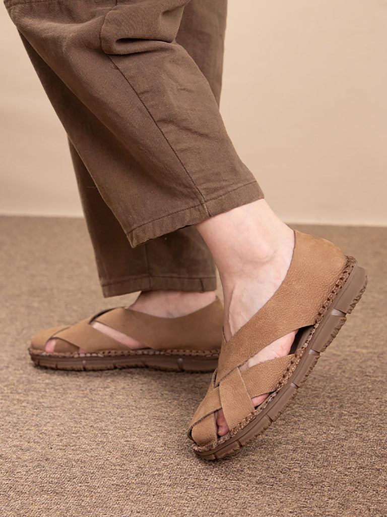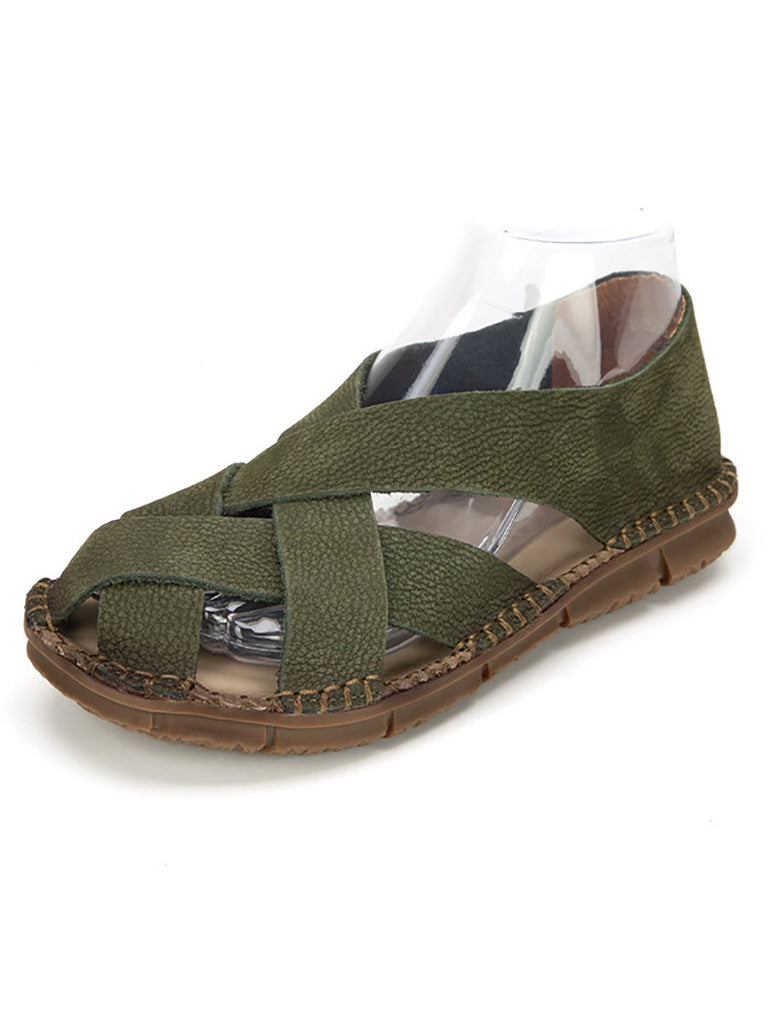 Women Summer Casual Solid Leather Weave Flat Shoes AS1055