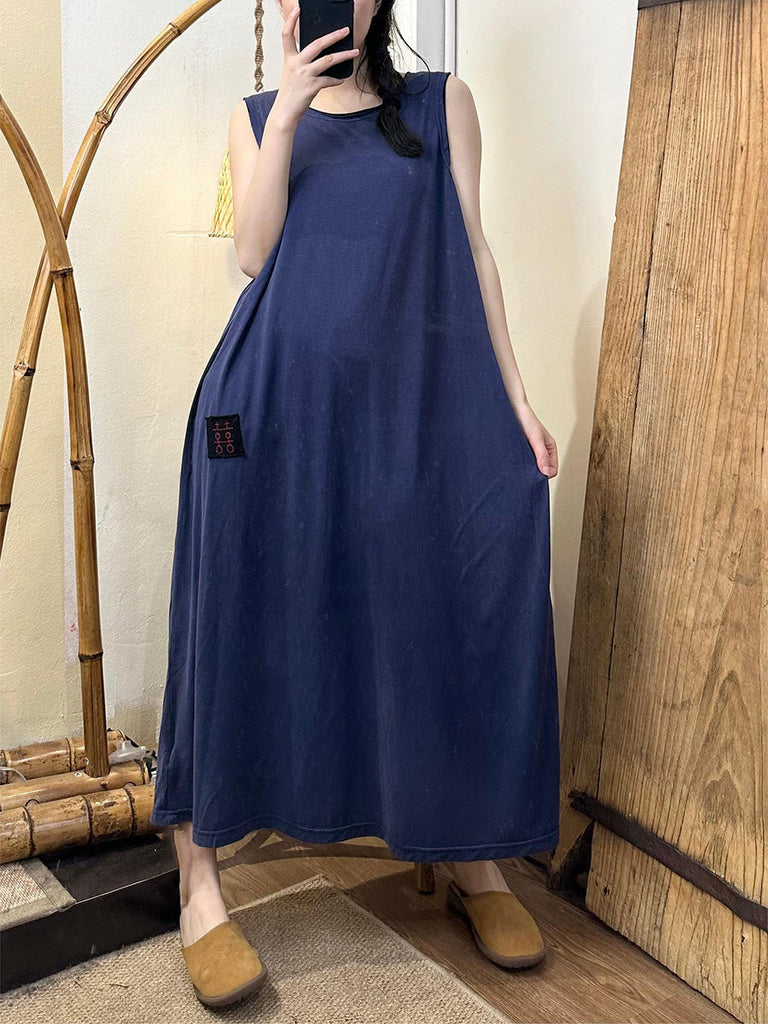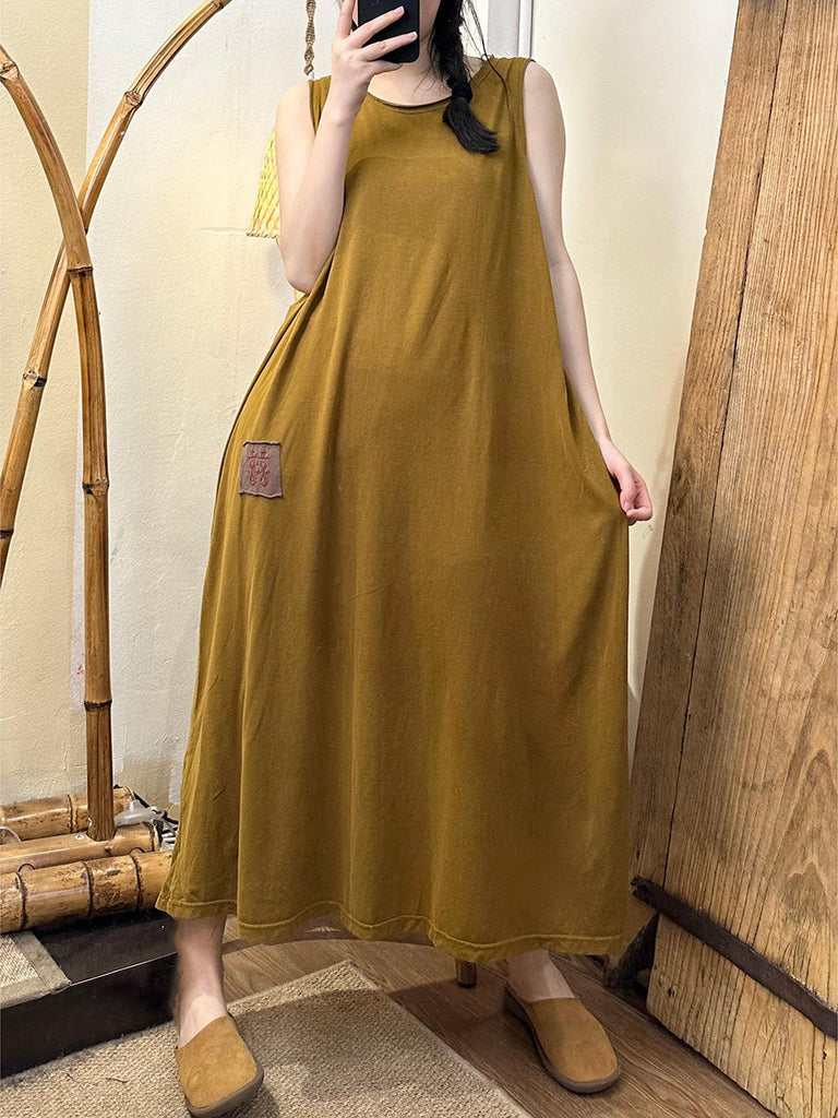 Women Summer CasuaL Solid Patch Spliced Vest Dress QW1021