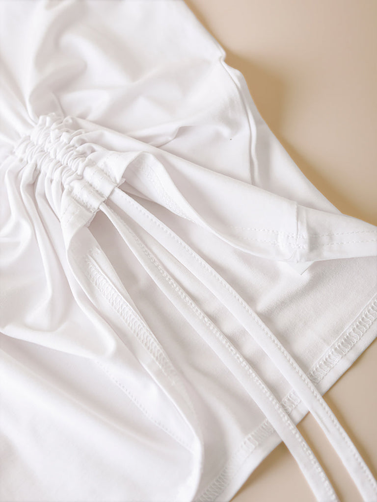 Women Summer Casual Solid Strap Cotton Shirt AA1037