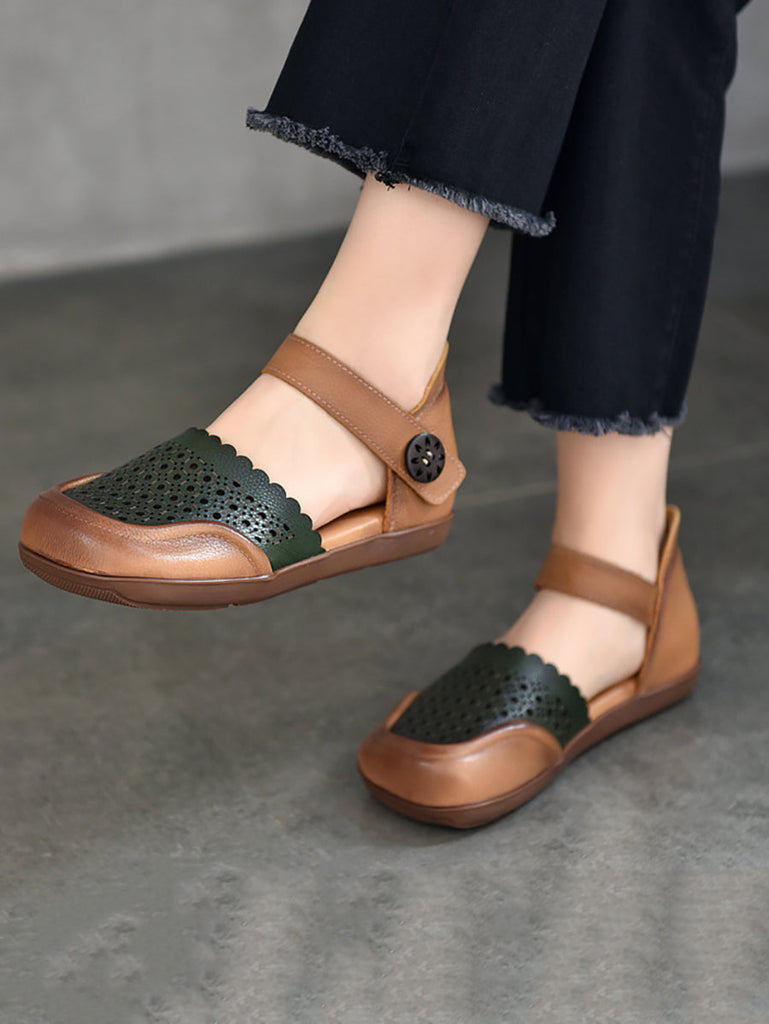 Indulge in luxury with our Women Summer Colorblock Leather Flat Shoes. Crafted from fine leather, these flat shoes feature intricate cutouts for a comfortable and breathable fit. Perfect for summer, add a touch of style and comfort to any outfit.