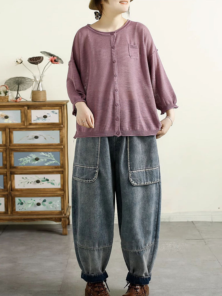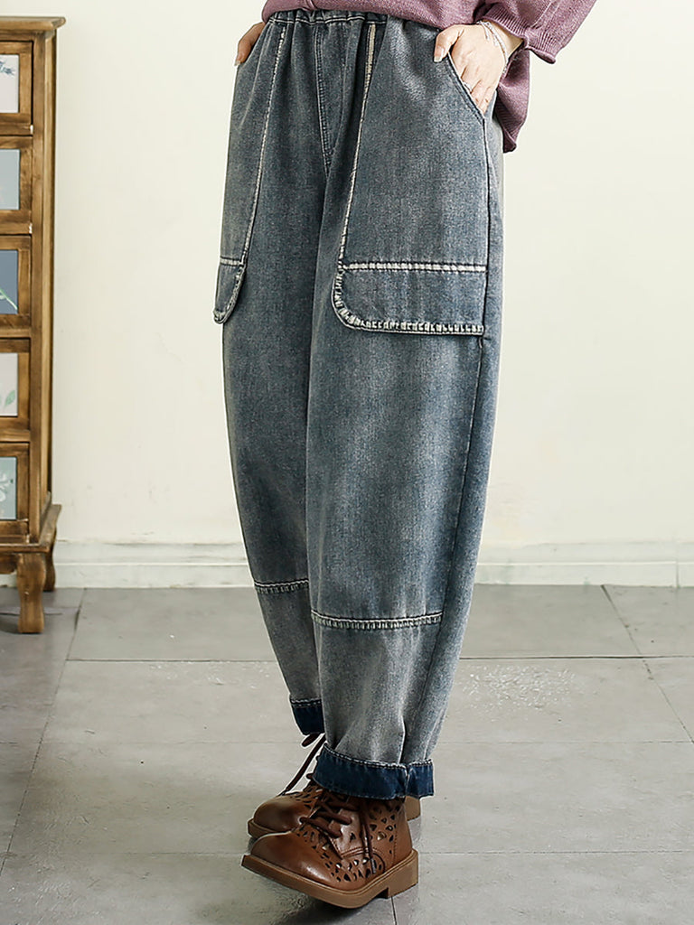 Women Summer Denim Solid Spliced Harem Pants QW1016