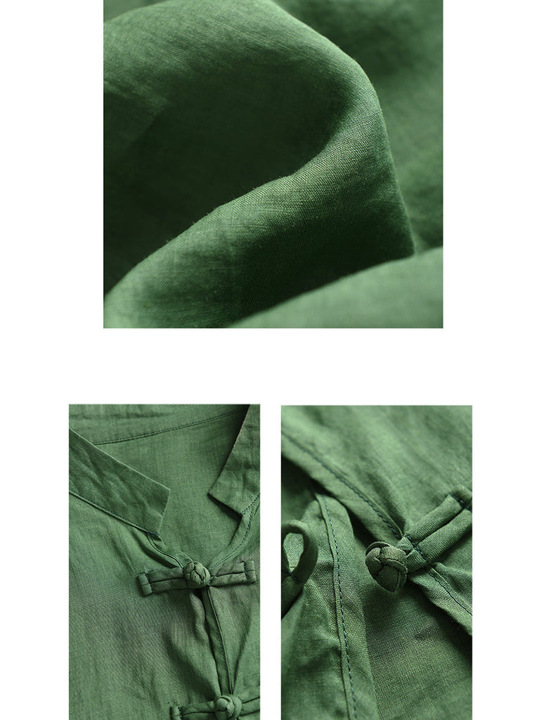 Women Summer Ethnic Solid Button-up Ramie Shirt QW1046