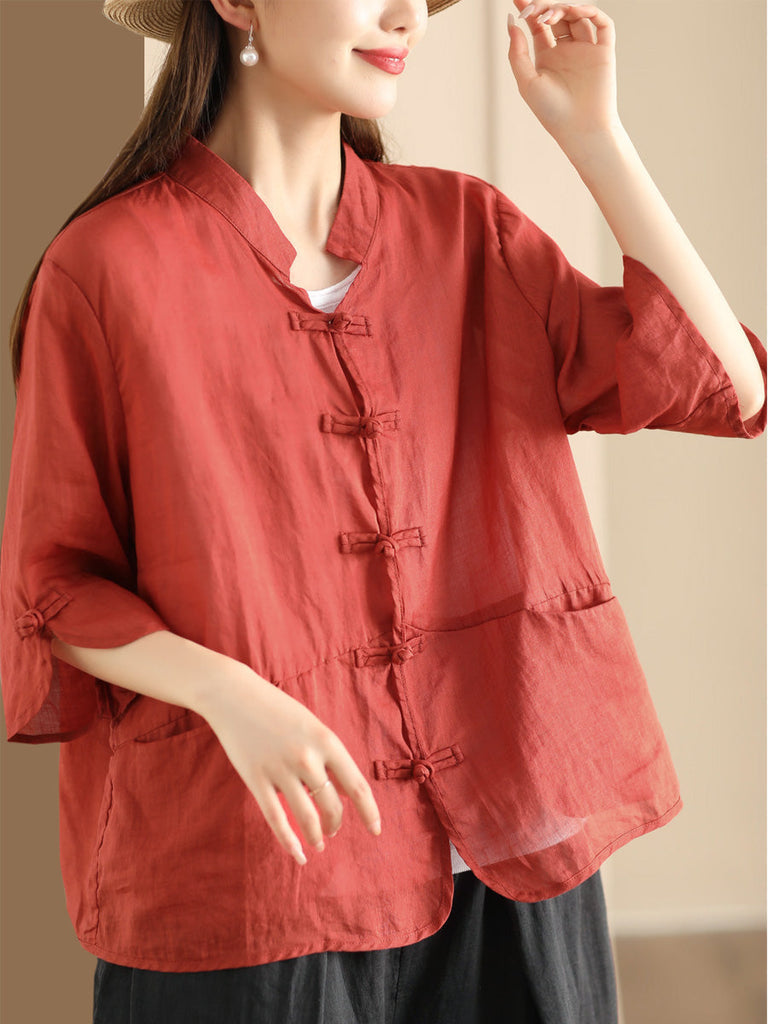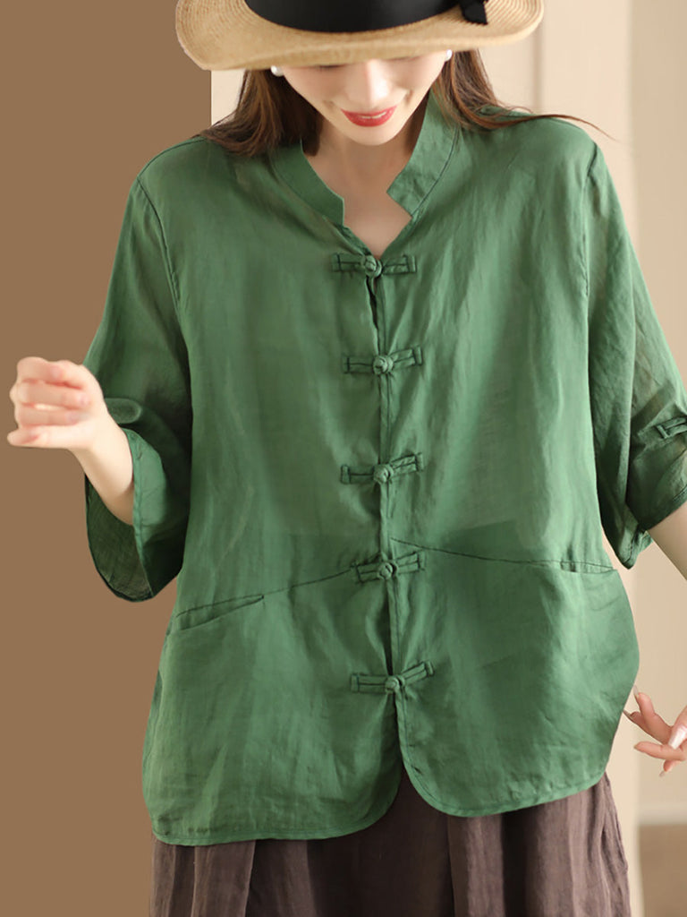The Women Summer Ethnic Solid Button-up Ramie Shirt QW1046 is the yin, to your yang. You've found what you're looking for.