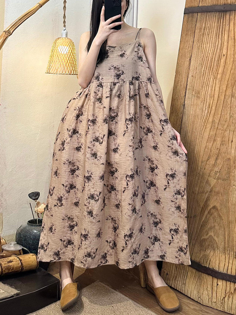 Women Summer Floral Artsy Ramie Maxi Dress AS1021