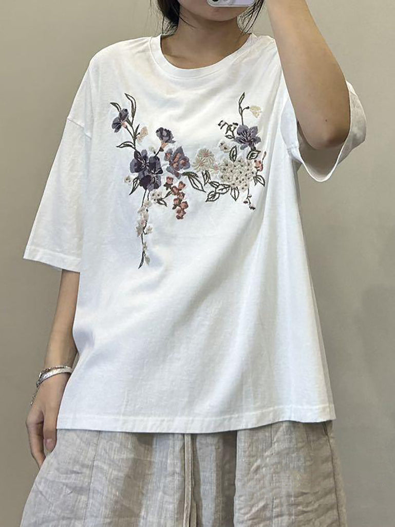 Women Summer Floral Embroidery Cotton Shirt AA1027