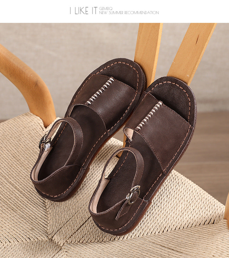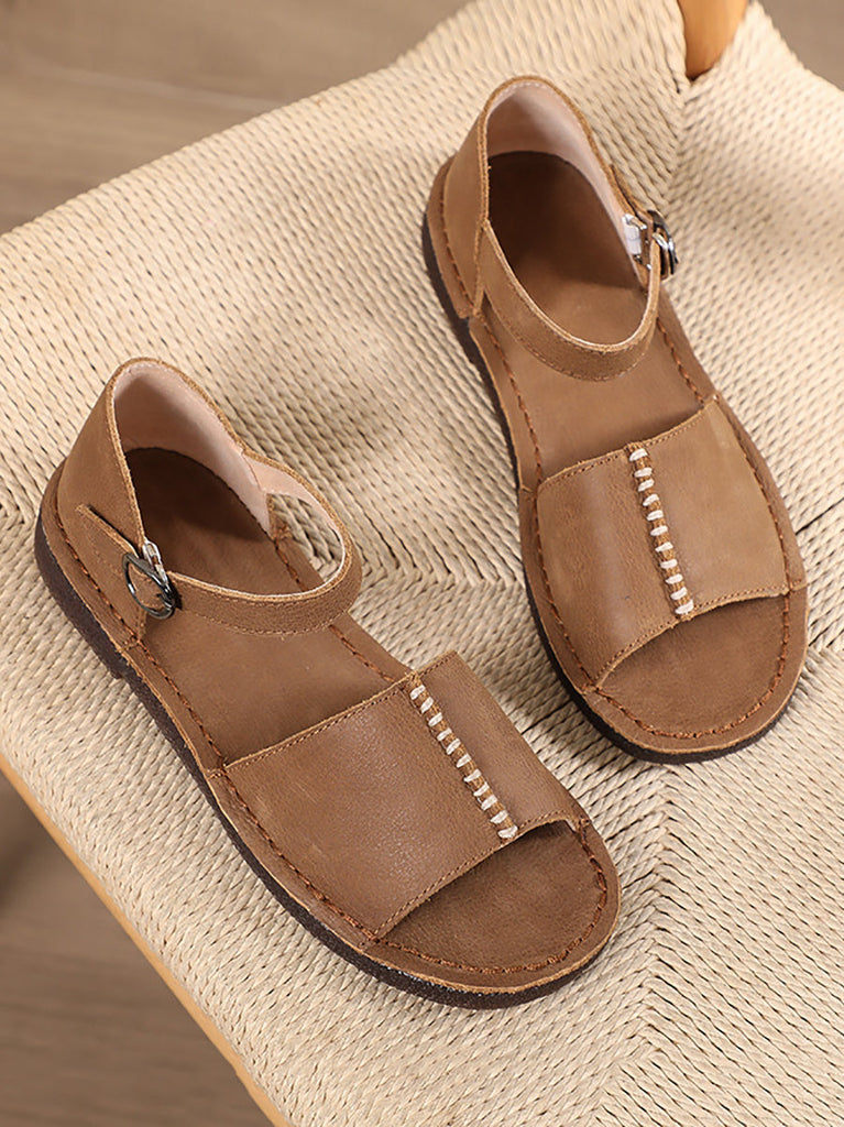 Women Summer Leather Spliced Flat Solid Sandals UI1031