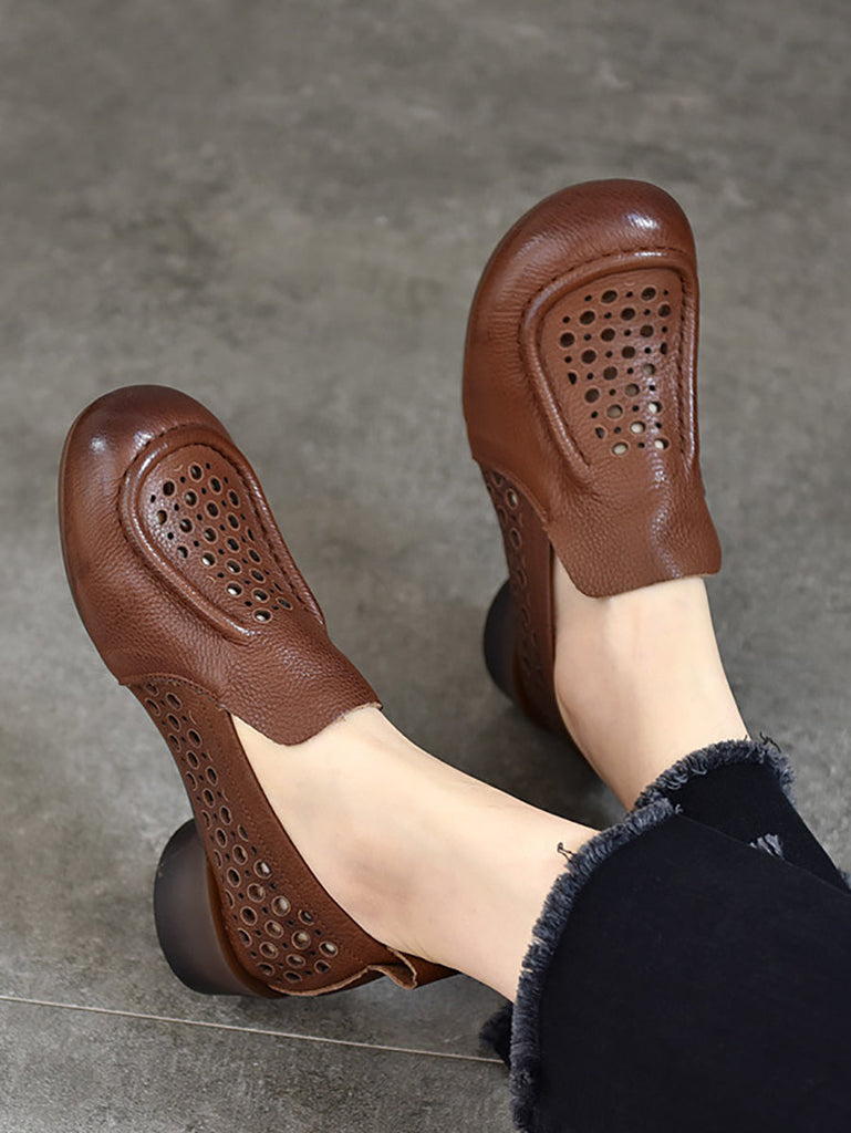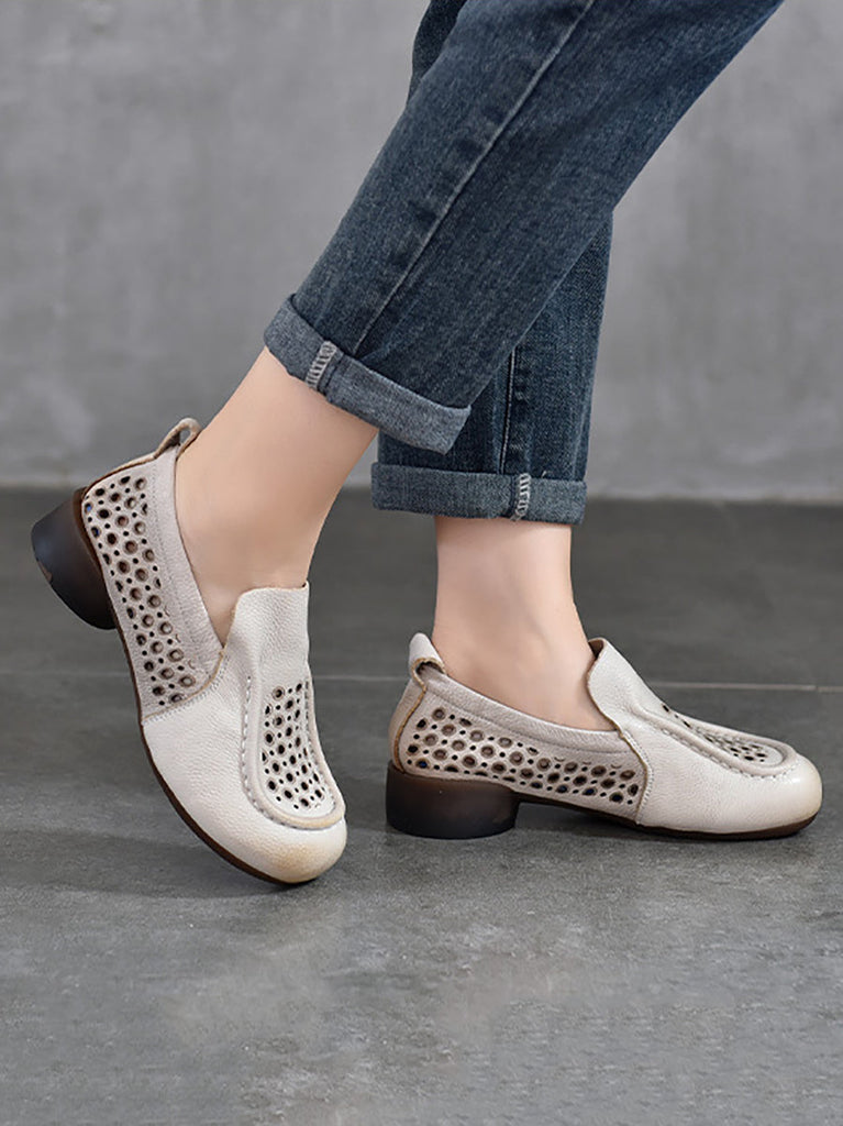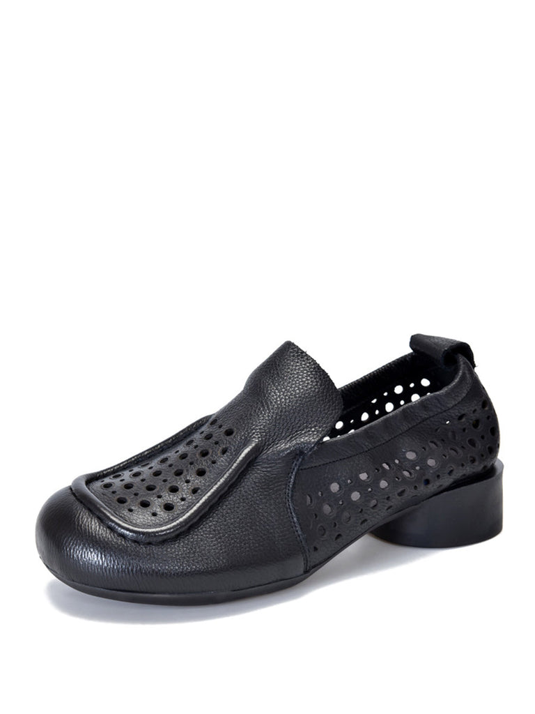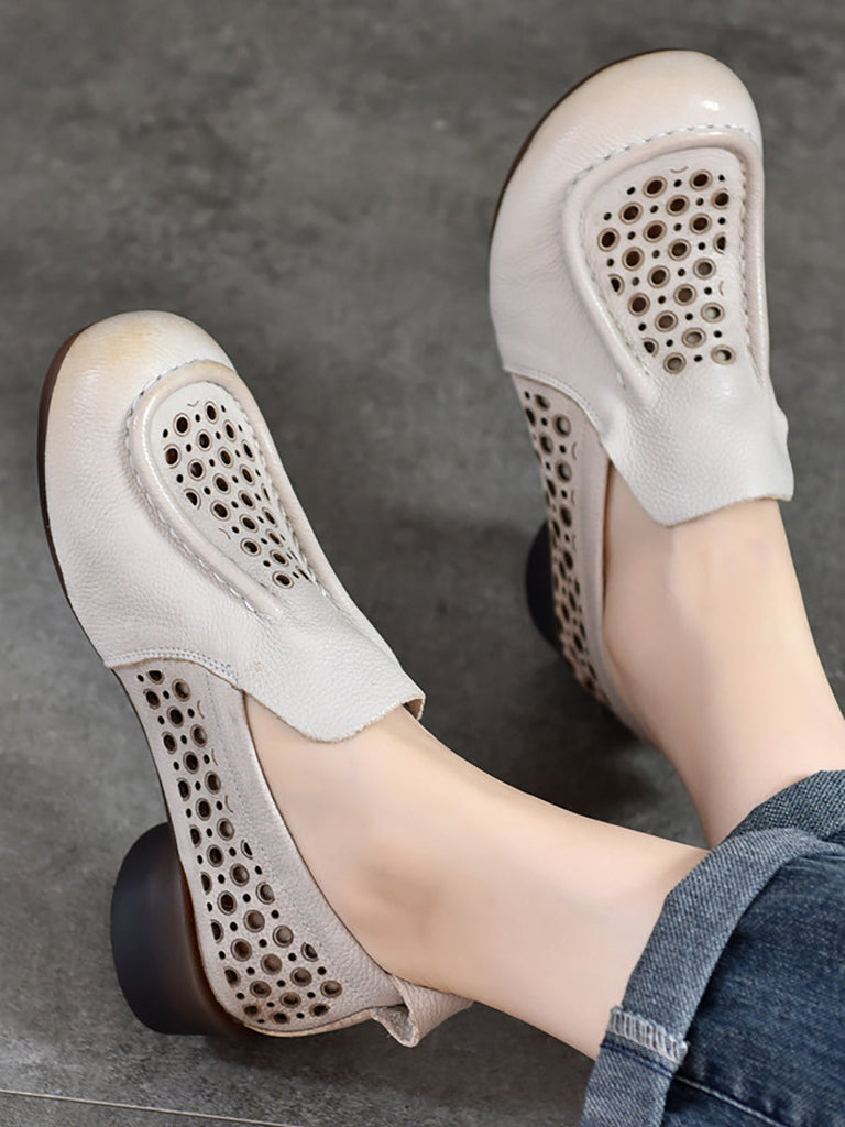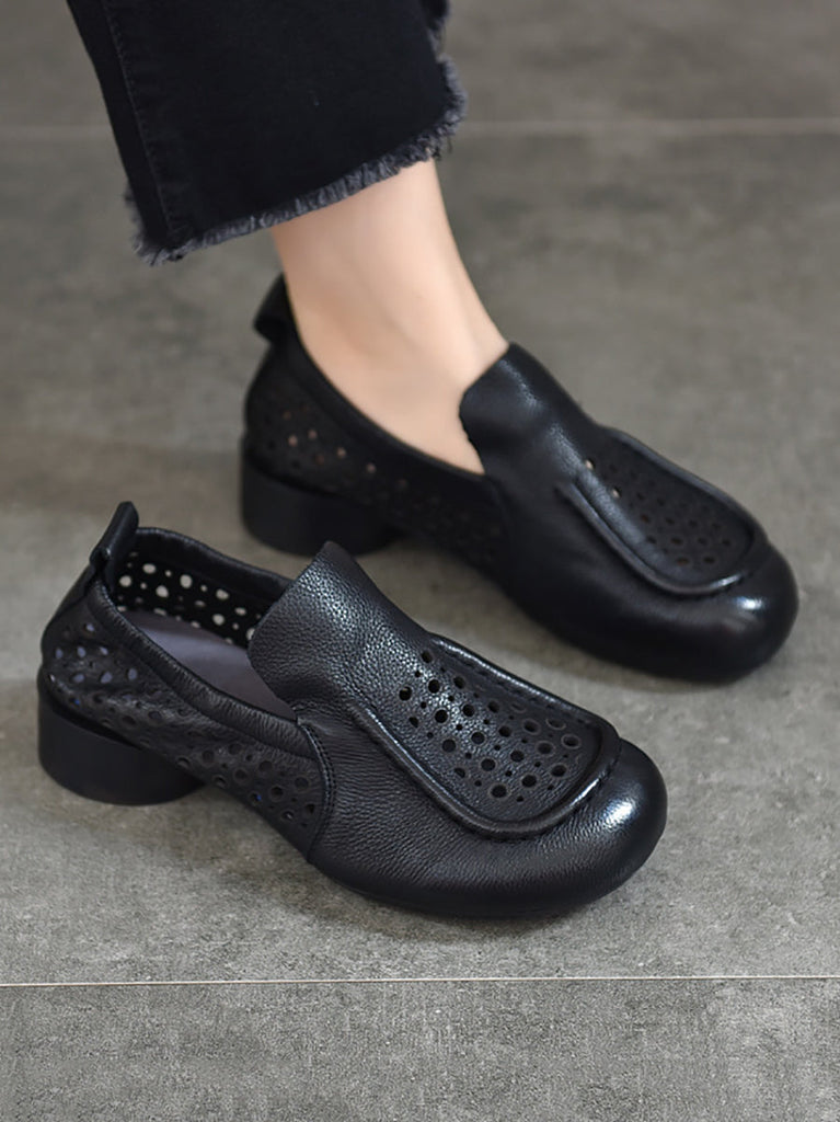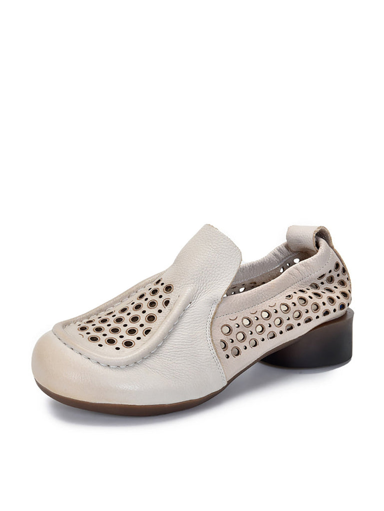 Women Summer Solid Casual Cutout Leather Low Heel Shoes KL1023