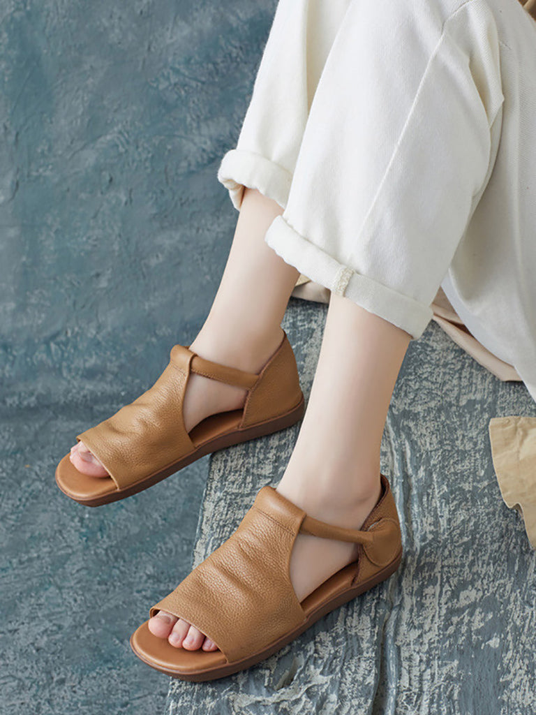 Women Summer Solid Casual Leather Flat Sandals UI1013