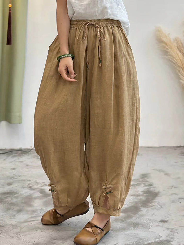 Women Summer Solid Casual Ramie Harem Pants XX1038