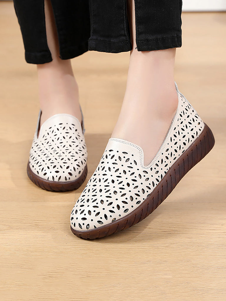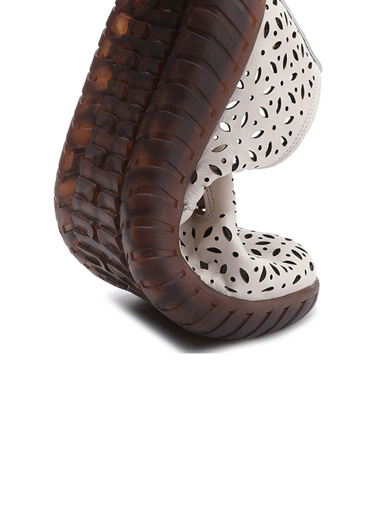 Women Summer Solid Leather Cutout Flat Soft Shoes UI1027