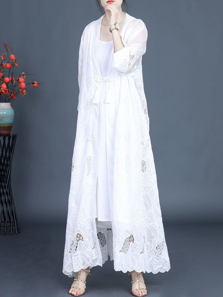 Women Summer Vintage Cutout Tassel Vest Dress+Outwear KL1016