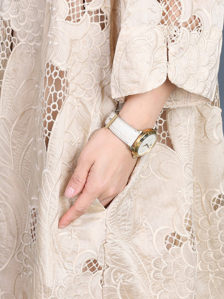 Introducing the Women Summer Vintage Cutout Tassel Vest Dress+Outwear KL1016 - a luxurious blend of 80% Tencel and 20% Milk Fiber for ultimate comfort and impeccable style. The exquisite floral pattern and chic V-neck collar exude sophistication, while the half sleeves and artsy regular sleeve design make it a must-have for the Spring and Summer.
