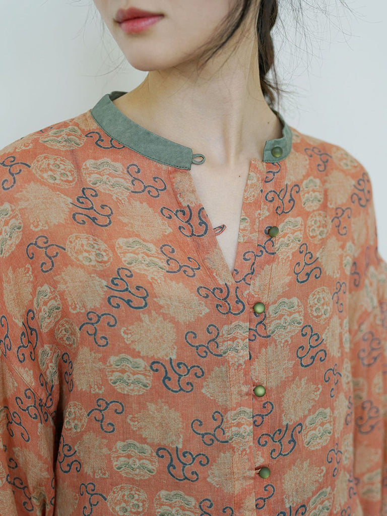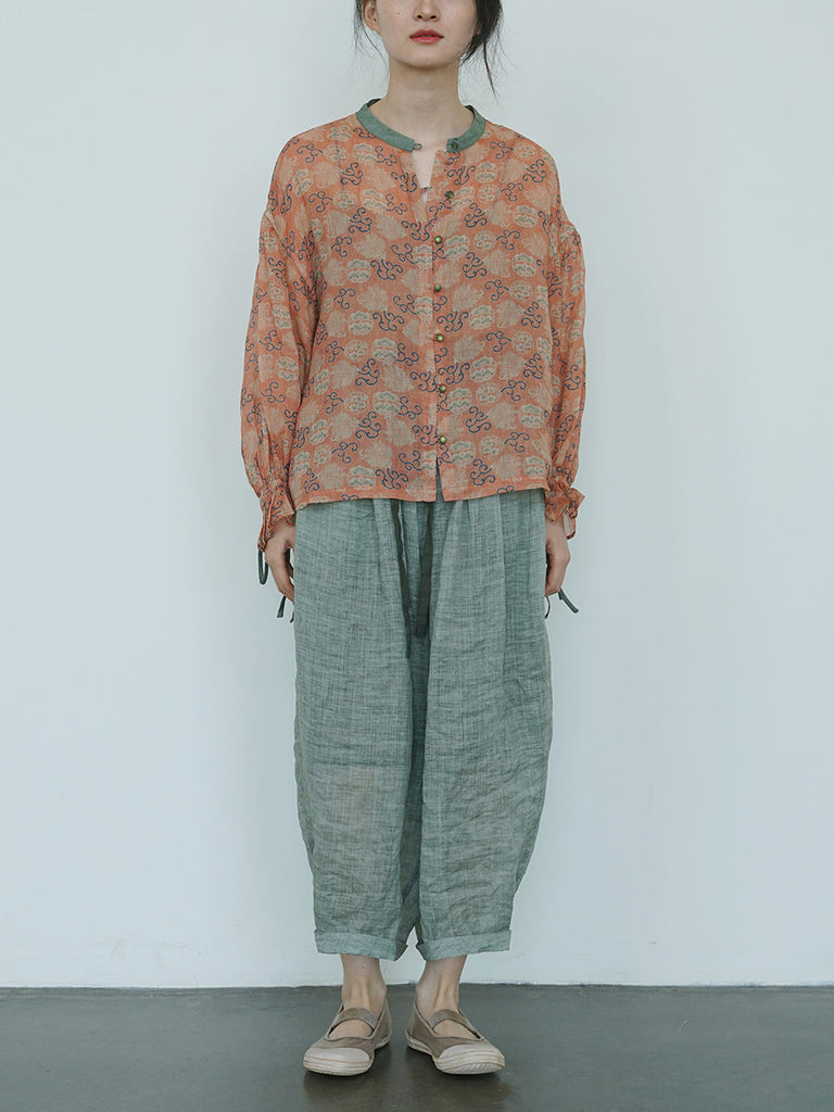 Women Summer Vintage Flower Embroidery Ramie Shirt TY1032