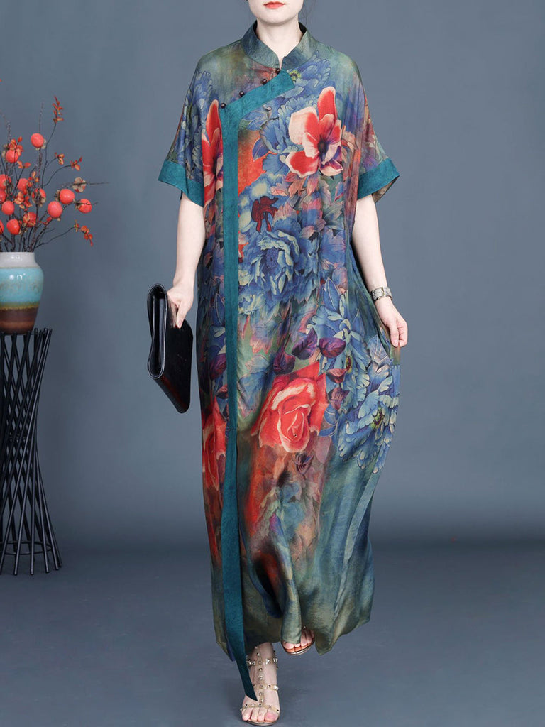 Women Summer Vintage Flower Spliced Robe Dress SC1005