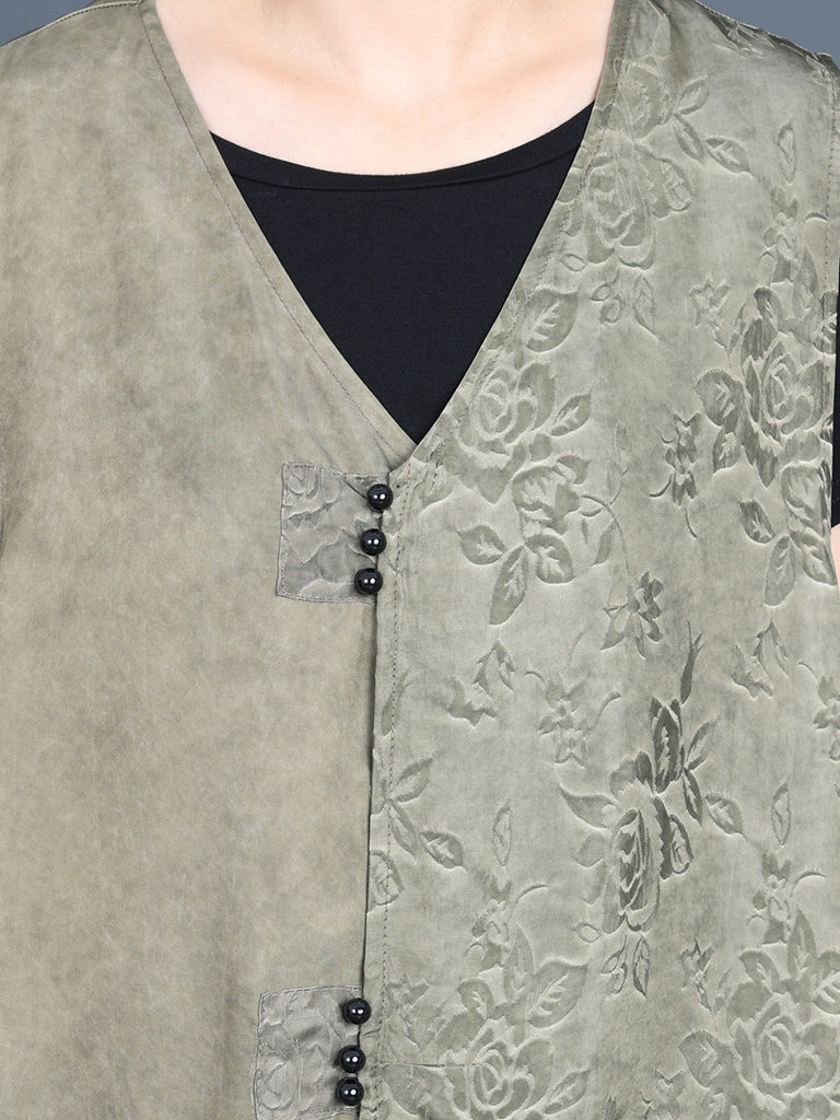 This luxurious Women Summer Vintage Irregular Spliced Vest+Pants ensemble is crafted from top-quality acetate fabric, ideal for the warm season. The vintage-inspired aesthetic boasts a V-neckline, intricate jacquard print, and sophisticated button accents. The pants feature an adjustable elastic waist and reach the ankle for a comfortable and stylish fit.