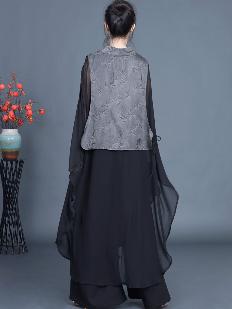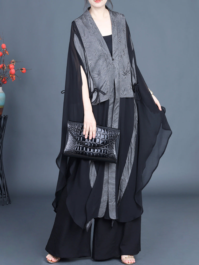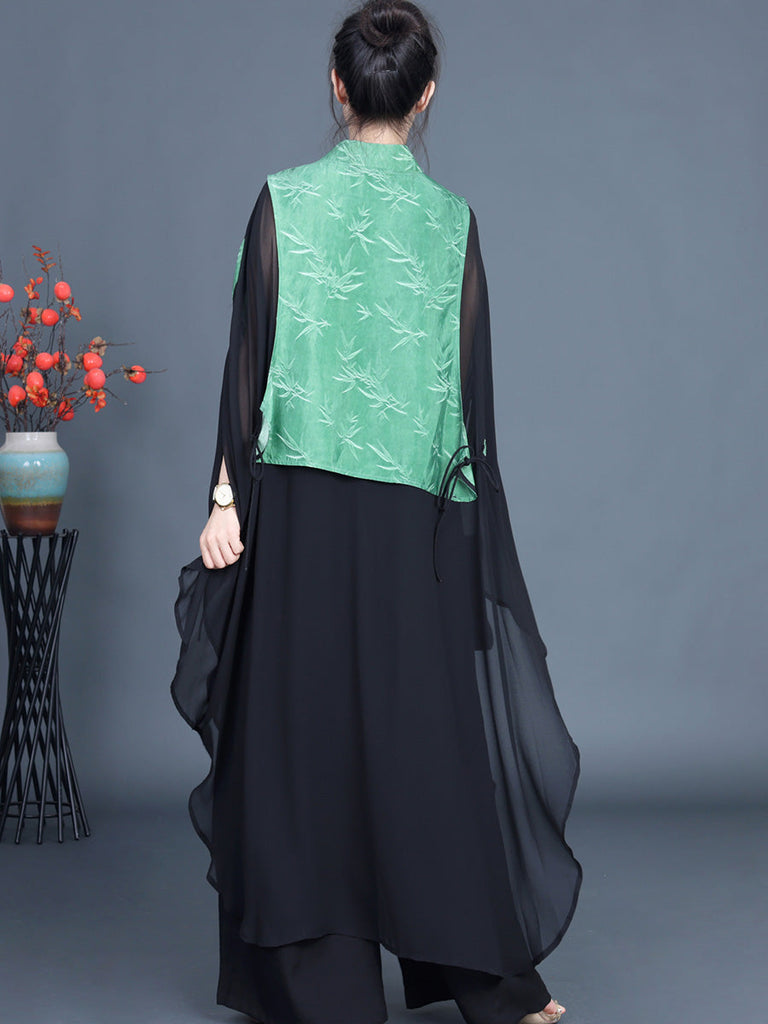Women Vintage Leaf Jacquard Spliced Summer Outwear PA1035