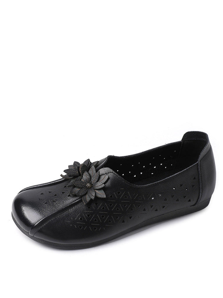 Women Vintage Leather Flower Cutout Flat Shoes PA1026